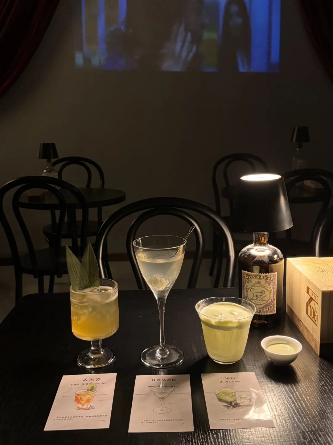 近期发现的i人天堂小酒吧,藏在鸡鹅巷里,店里超有氛围感,酒单是手绘的,月光马天尼、一人世界、事后烟,每款都很有意思。