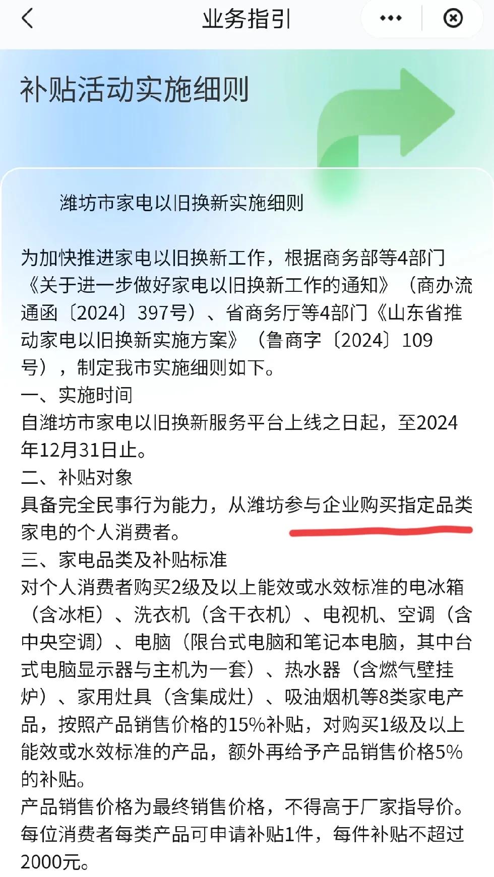 这个家电补贴,只能线下?还是制指定参与企业? 为啥大山东,跟广东,浙江,北京,上