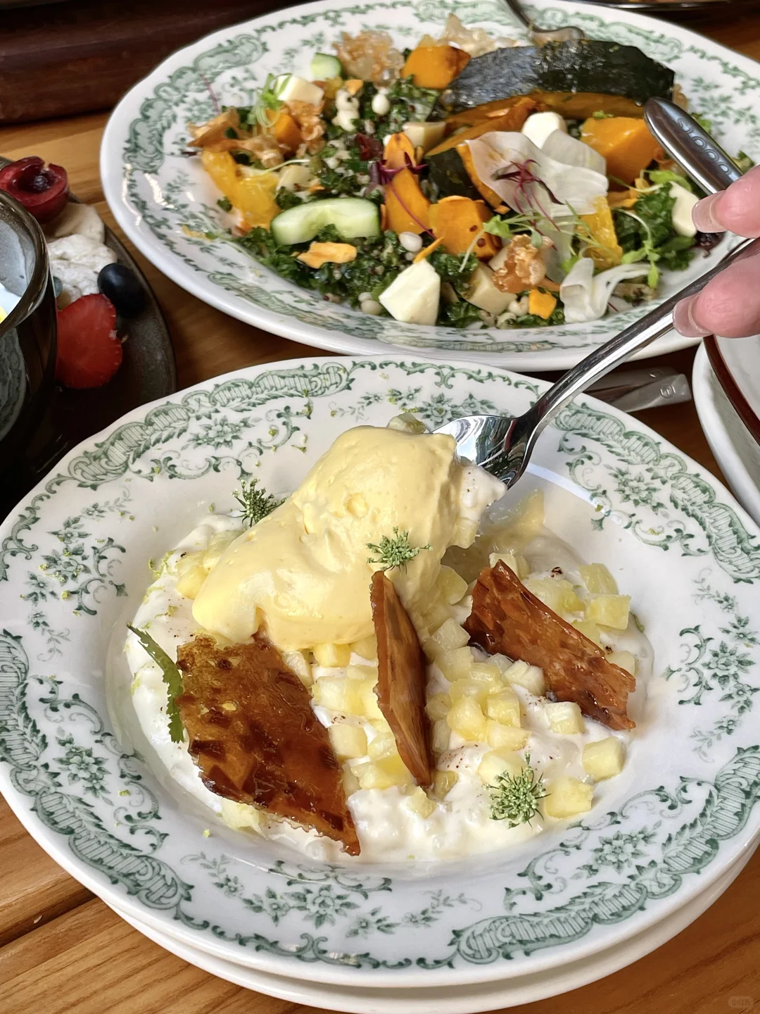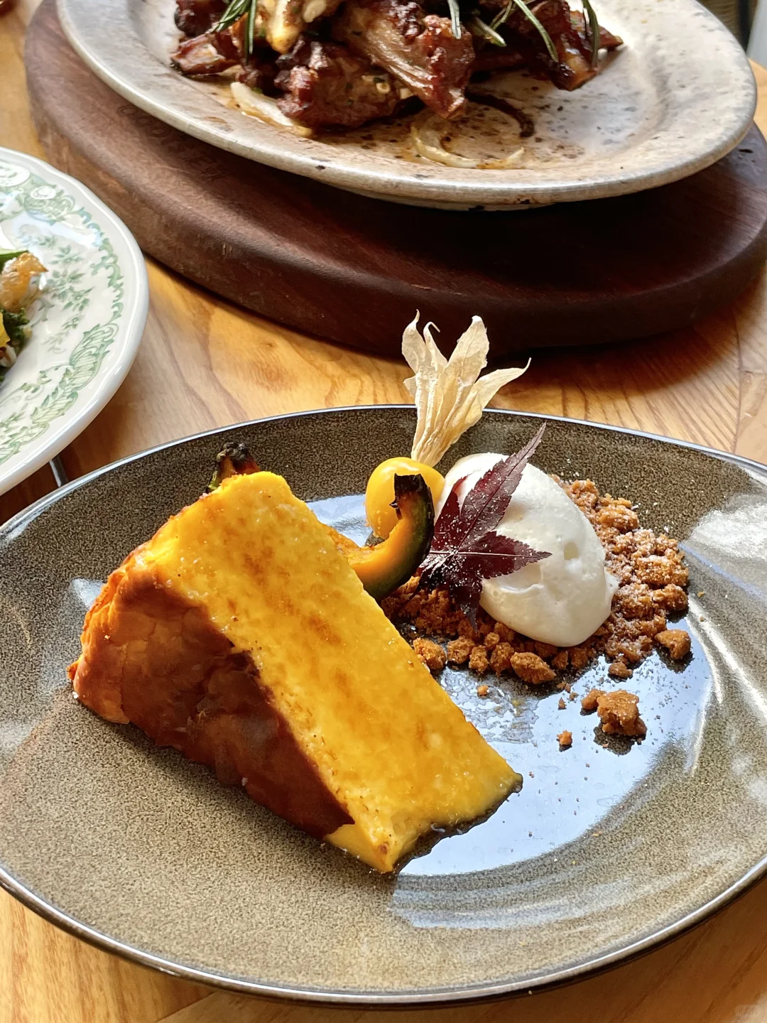 近期很钟爱的一家漂亮餐厅🍴 在花园里吃brunch💐 很适合秋天带crush来吃😆 坐在户外吹着凉风很惬意 - 🎃焦糖南瓜巴斯克 很秋天的一款甜品🧀️ 🍴天然牧场香草羔羊排 火焰烤炙的羊排好香好香… 一口一个肉质很嫩! 🍮椰子凤梨米布丁 空气感十足的布丁入口即化 🍝肉工奶香蘑菇肉酱千层面 每层都夹满了厚厚的肉酱🤤 还有点淡淡的奶香味