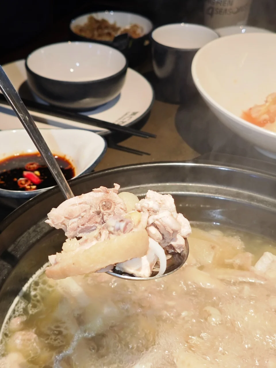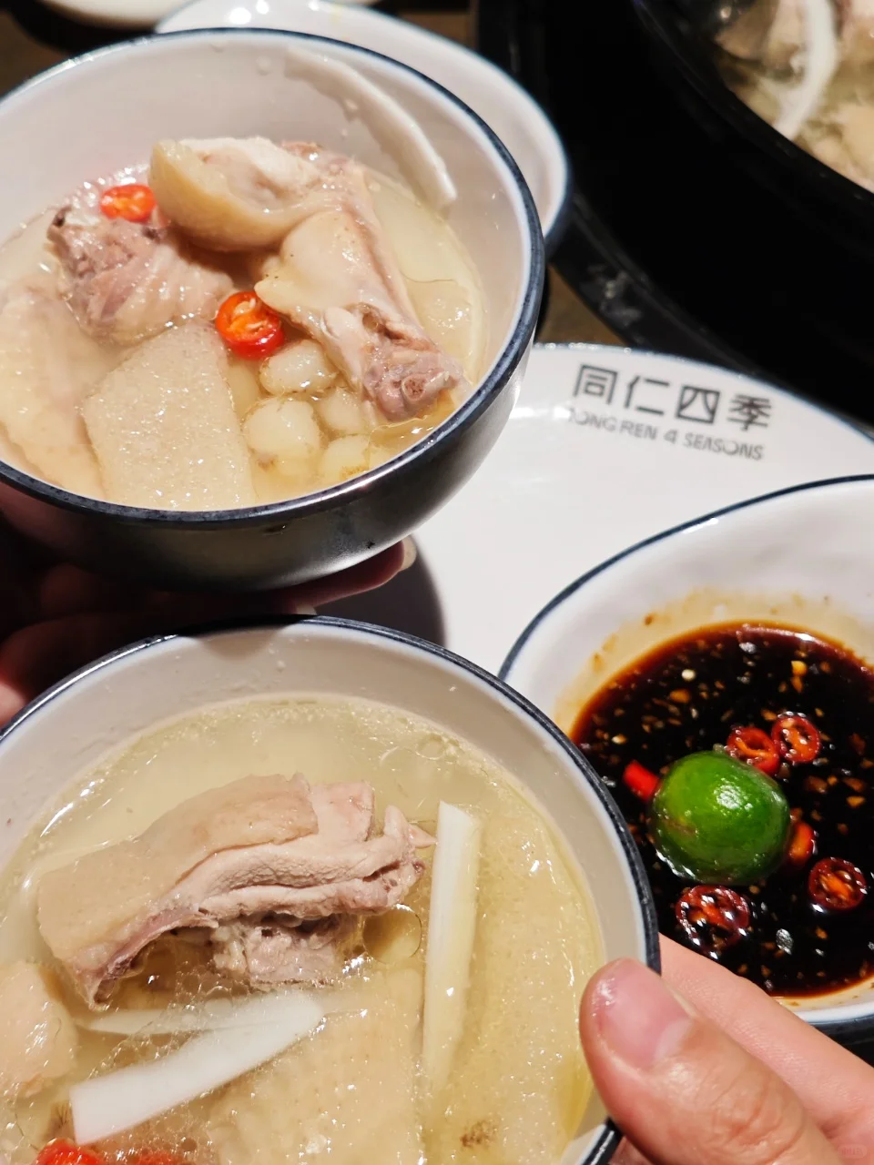 新鲜的食材往往 只需要最简单的烹饪 这句话果然没错 爱琴海新开的同仁四季 好香甜的一口鸡啊! 清甜椰子➕文昌鸡的组合很绝配 纯椰汁没有一滴水 鲜嫩多汁的鸡肉!很好吃! 搭配灵魂蘸料!难忘