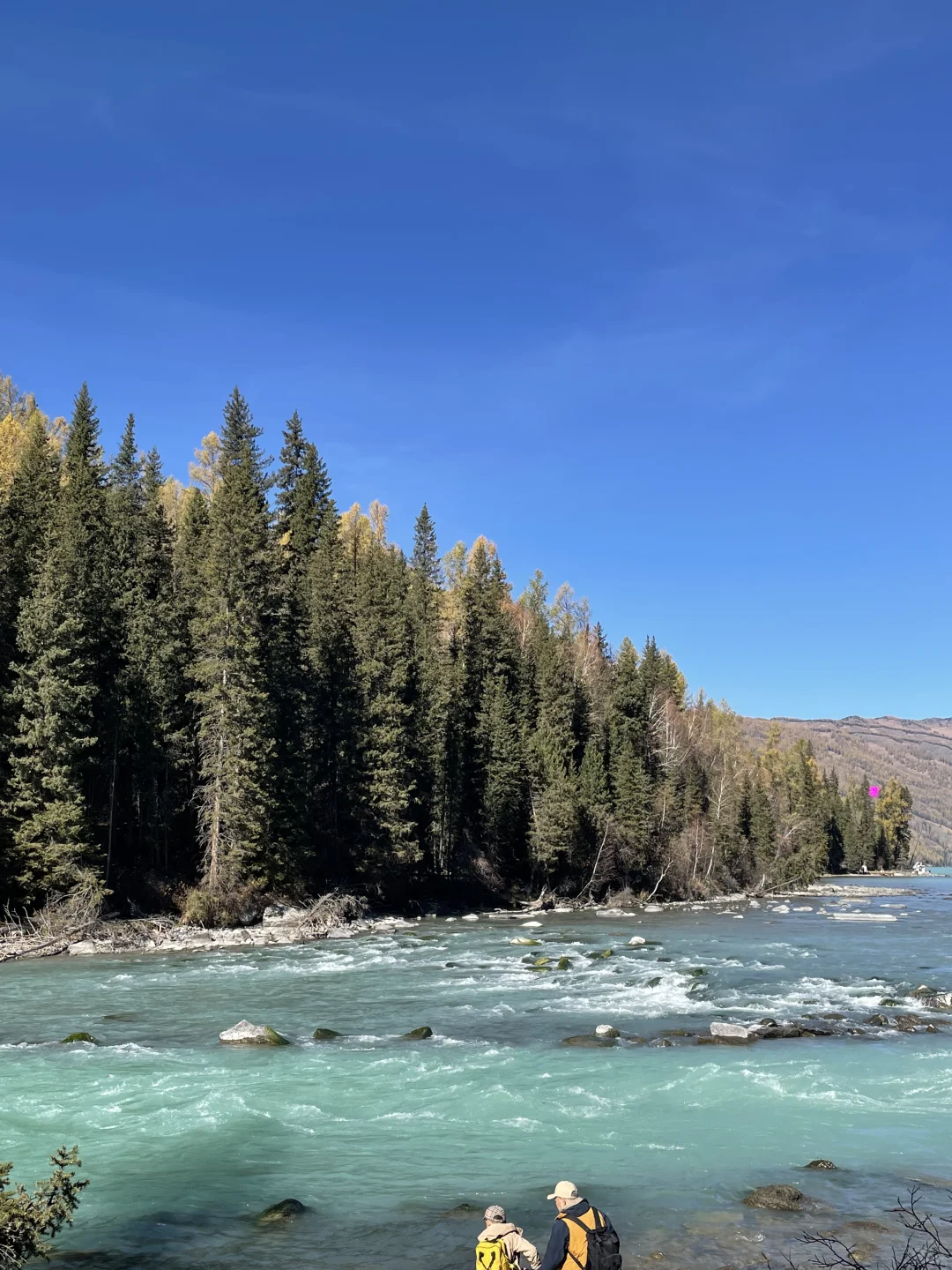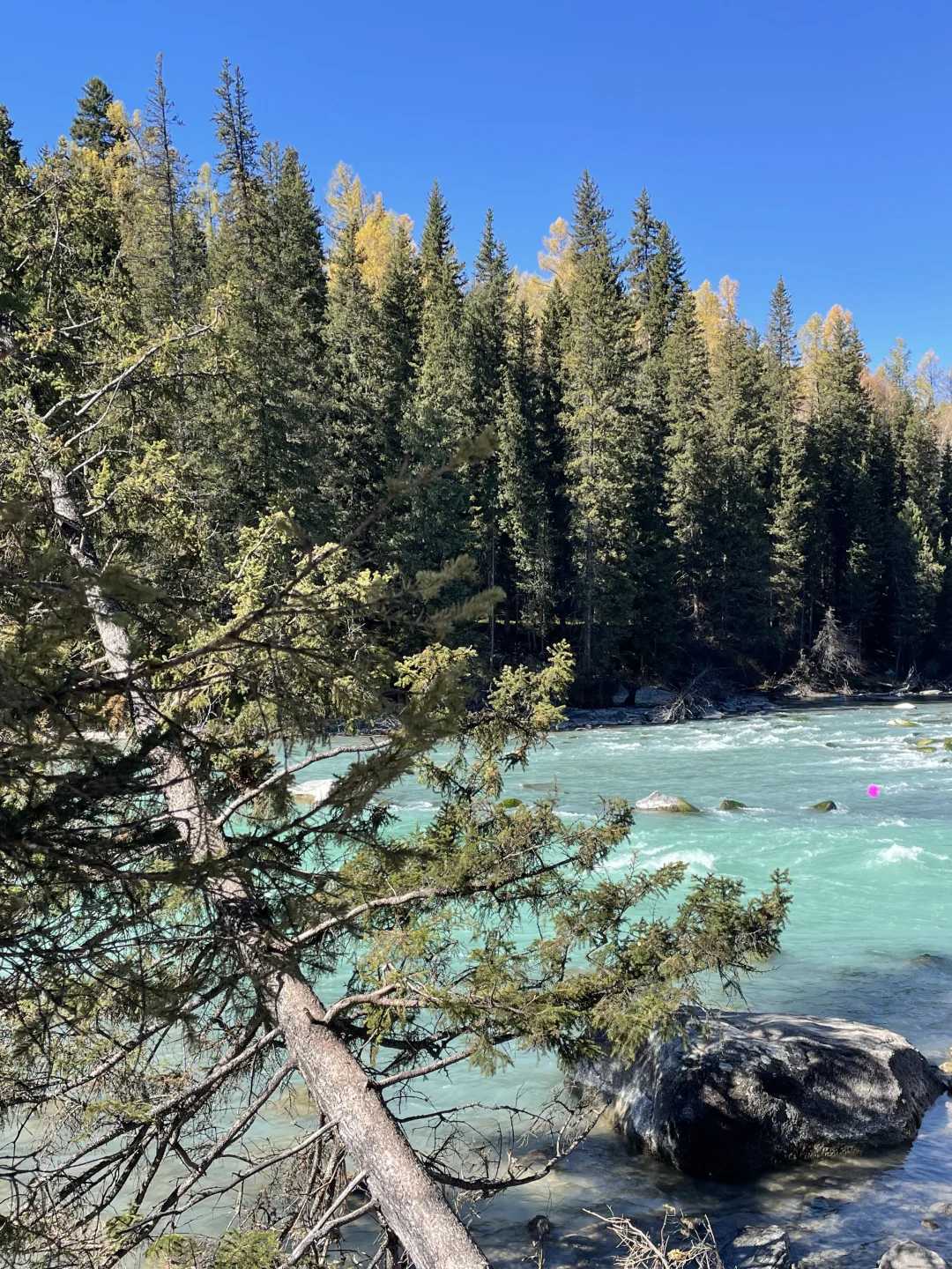 今天喀纳斯的天气巨好😌 国庆第一天人些微有点多 相比三湾好像更喜欢 喀纳斯湖的环湖栈道🫧 📷边走边拍 人也不多 美照轻松get