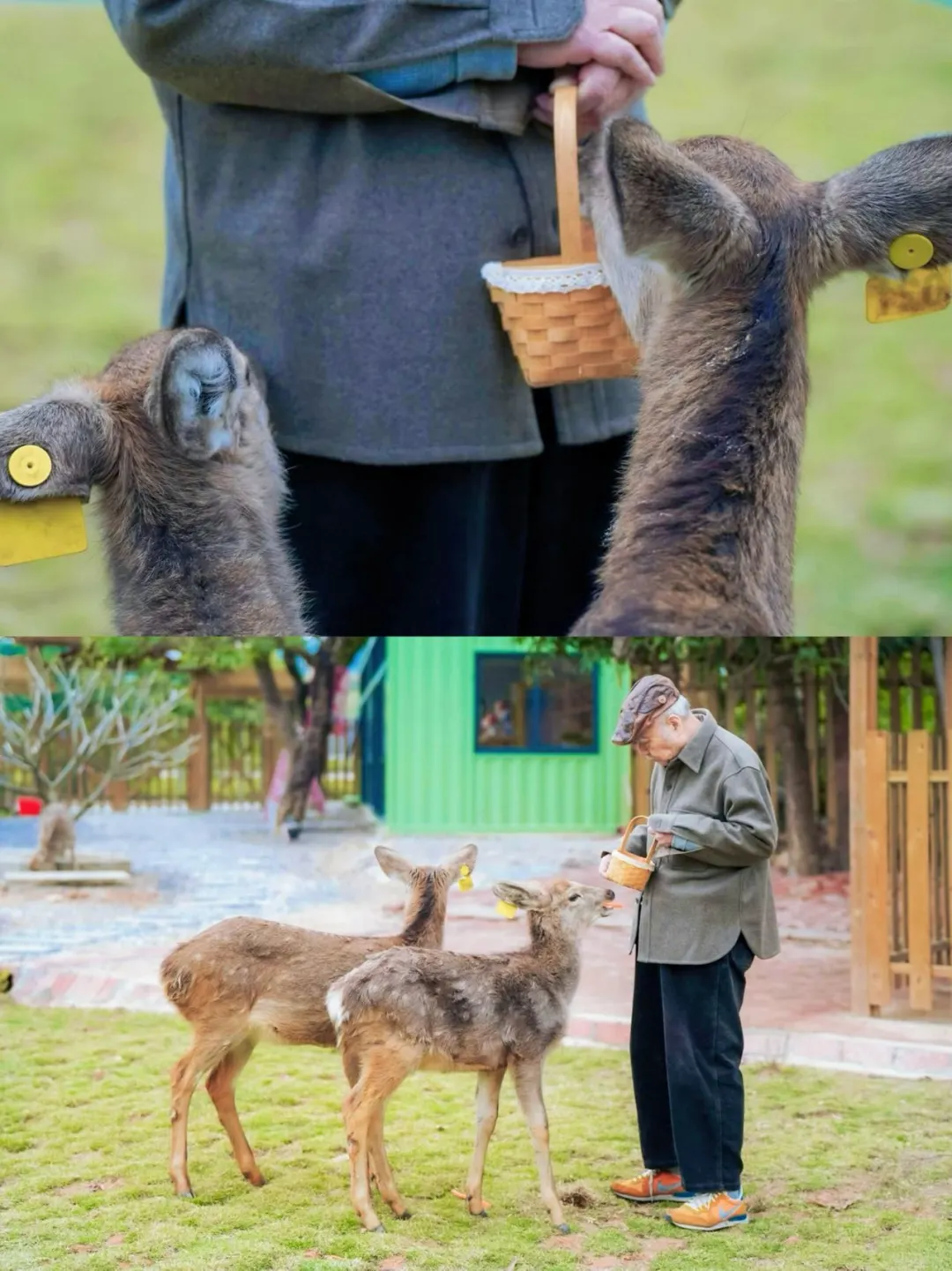 提上装满胡萝卜条的篮子时,小鹿看见就会围过来静静等着你的投喂,熟络了之后还会跟着你的脚步,超极可爱!