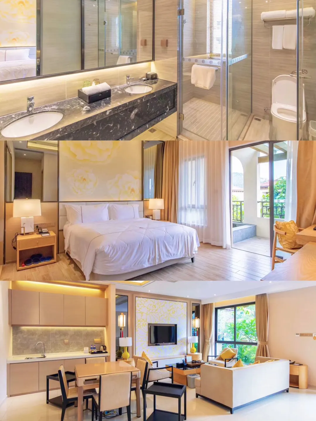 酒店是西班牙风格的独栋别墅🏡,多种房型选择,亲水别墅、花园别墅、庭院别墅、复式别墅、还有亲子主题房别墅。