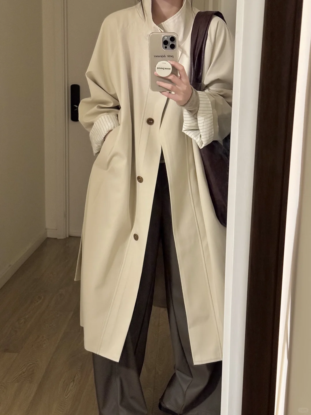 秋冬穿搭 早秋外套 风衣 风衣里面穿什么 韩系穿搭 通勤穿搭 实用穿搭 慵懒穿搭 杏色风衣小个子风衣