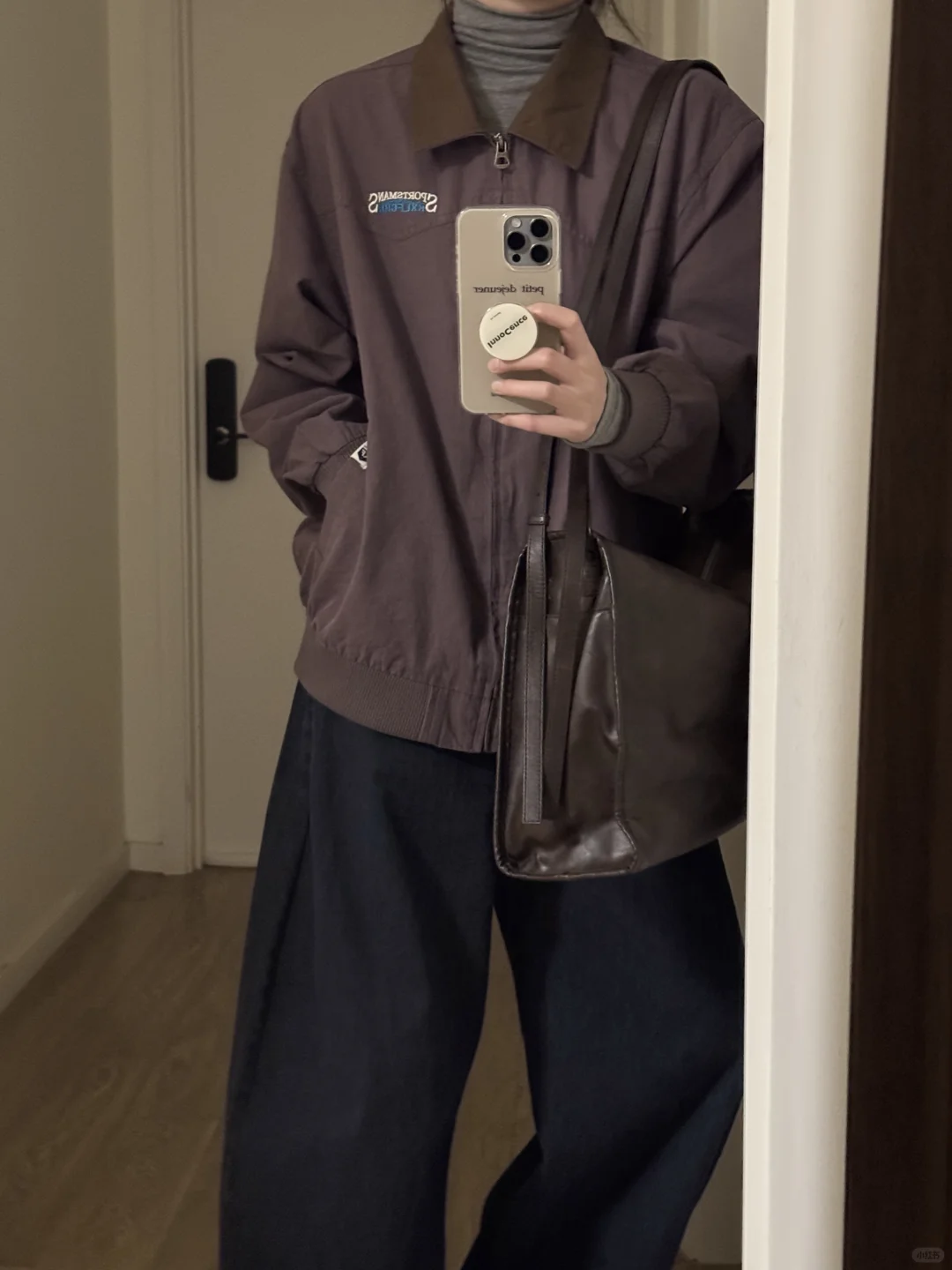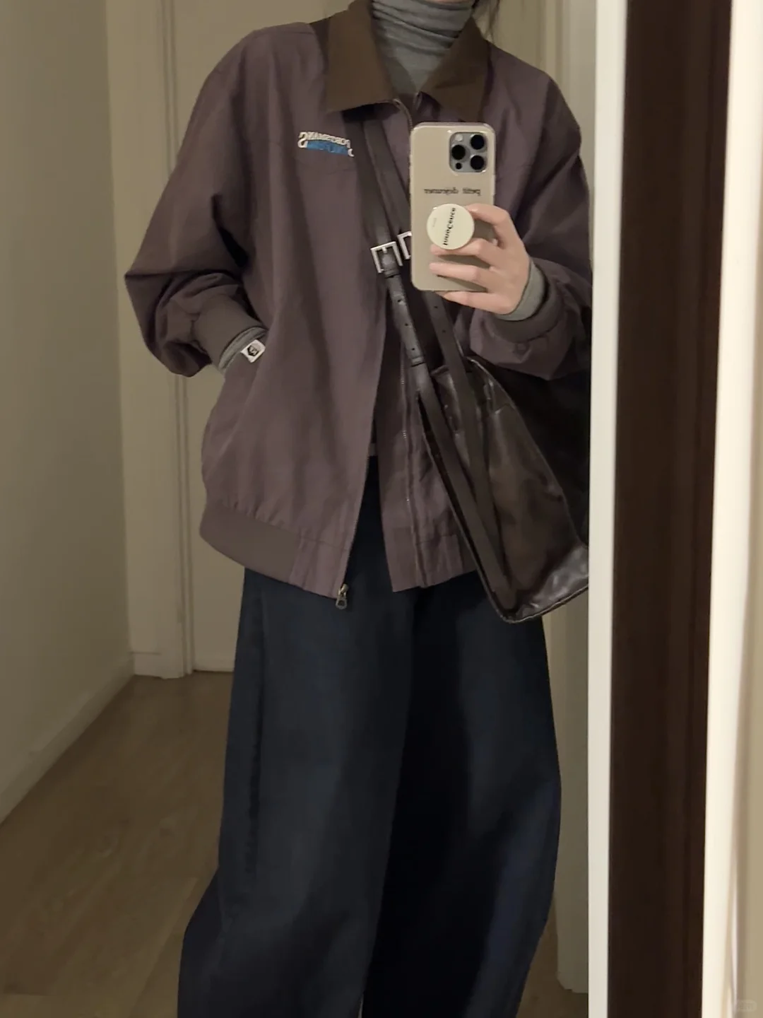 好秋冬美式复古休闲灰紫夹克外套叠穿🍆