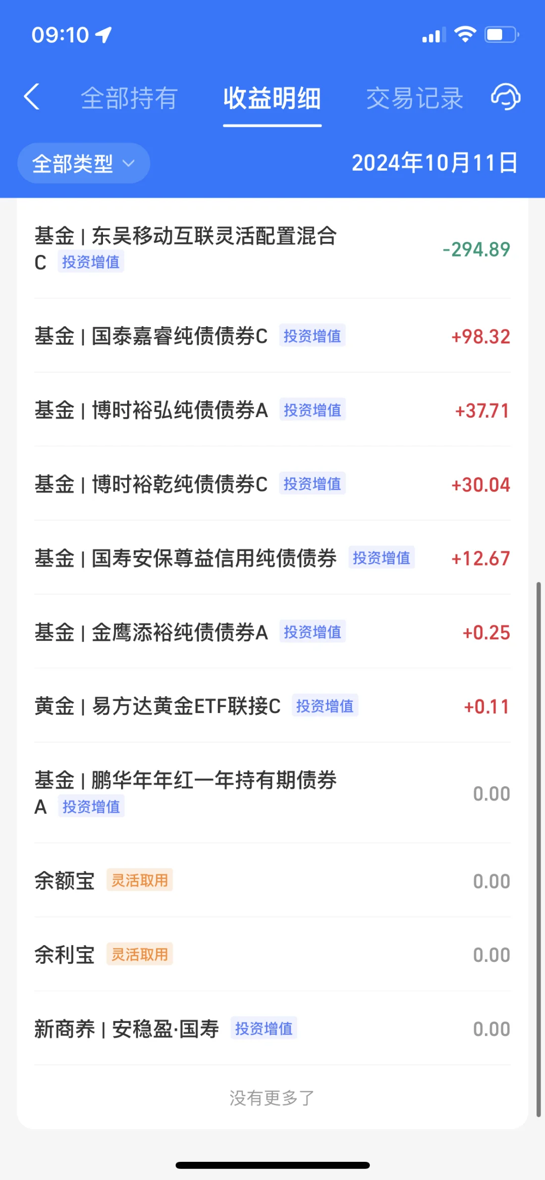 我的理财日记 因为2000的混债赚了近500元, 在股市一片大好的鼓动下, 小小加了1w,然后就一泻千里, 倒亏1000元,昨天债赚的都填了含股混债的坑, 下周看情况,如果不起来,带着手续费跑路, 见好就收,该断就断,守得住手真的很重要, 看了早上的债,利率小雨,信用没收益, 果然债基市场也还没有很稳定, 昨天加了5000千利率,1.5信用, 还没大批量加仓,最近就窝在余利宝吧~