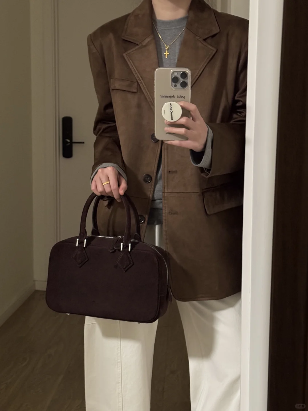 好秋冬韩系复古棕咖麂皮绒西装外套叠穿🧳