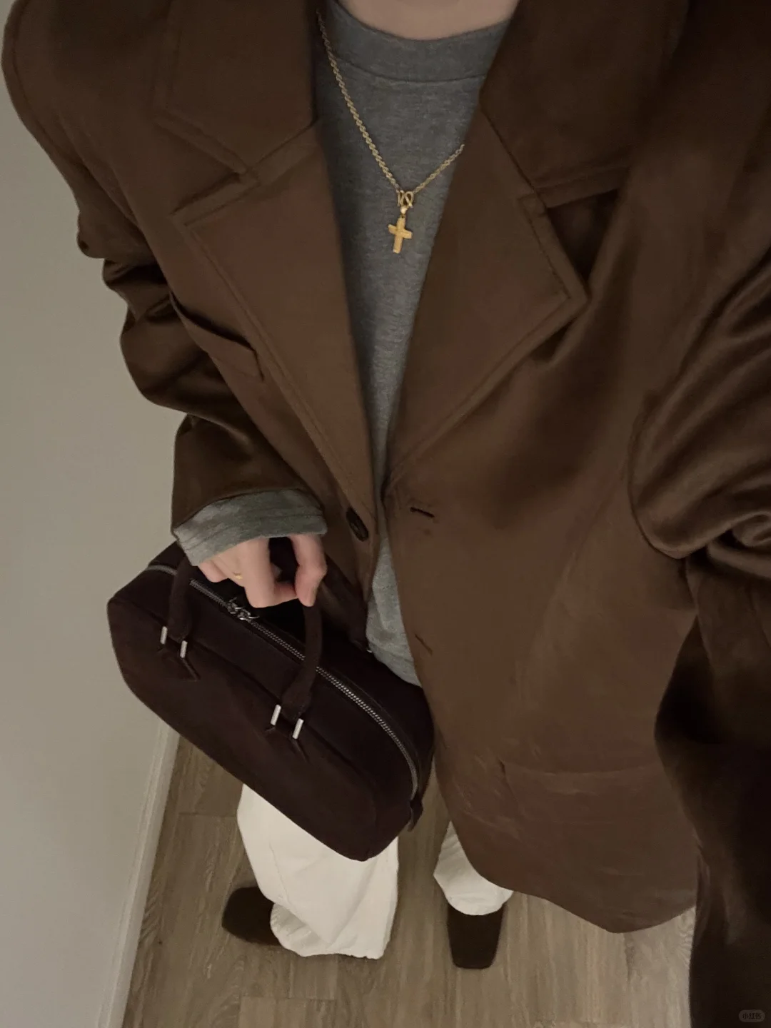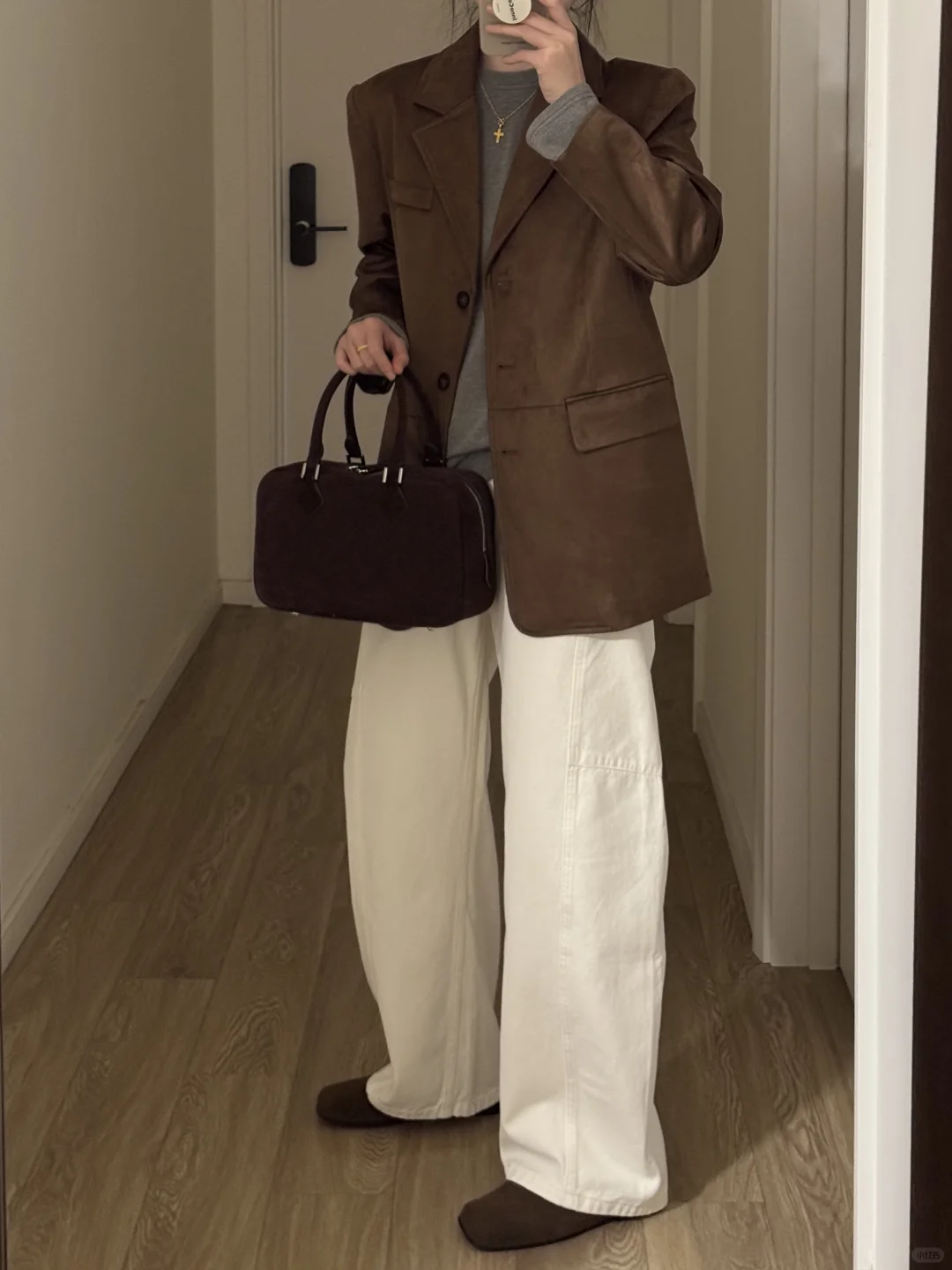 好秋冬韩系复古咖麂皮西装外套叠穿🛖