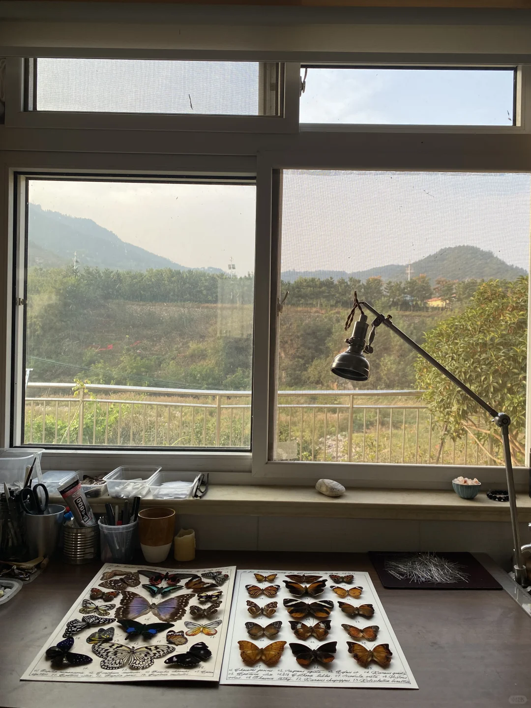 今晚真的是听着音乐工作了一晚上。最开心的是终于用雌性大蓝闪装裱了一幅图鉴作品,几个月前我就想做了,奈何因为走油导致品相不好,今晚将油污清理后就开心装裱啦~