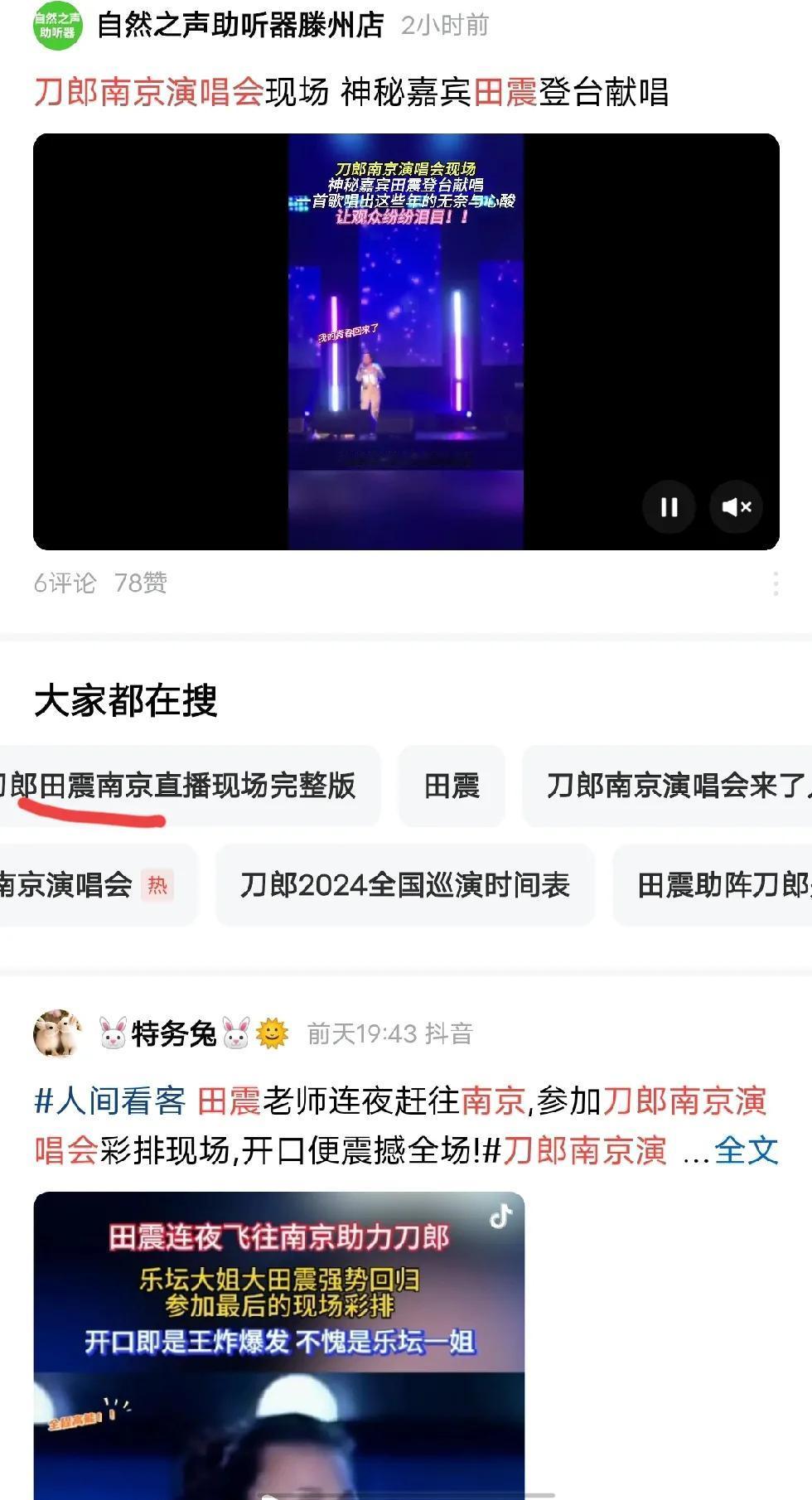 为啥,“田震助阵刀郎演唱会”的谣言,可以自由满天飞?官方那个专业辟谣账号呢?还有大数据默认搜索这个谣言。 流量再多,咱们也不能允许靠造谣,来引流啊。尤其刀郎,一个阳光撒下春风吹。一颗温暖柔和的心。别再伤害了。 全国文旅利用刀郎宣传大美河山。这个没问题。流量用在正地方。造谣不要造在真诚的人身上。
