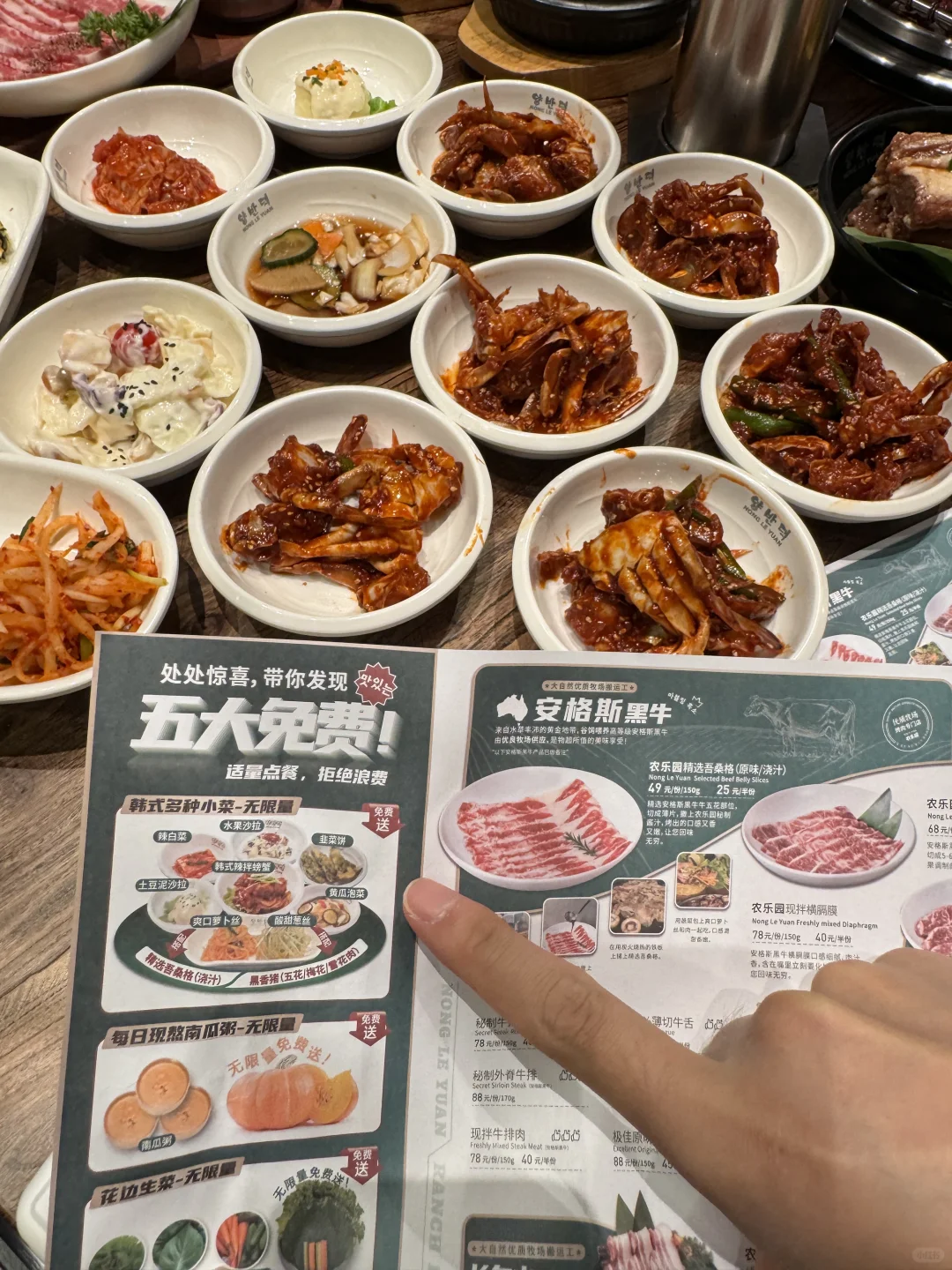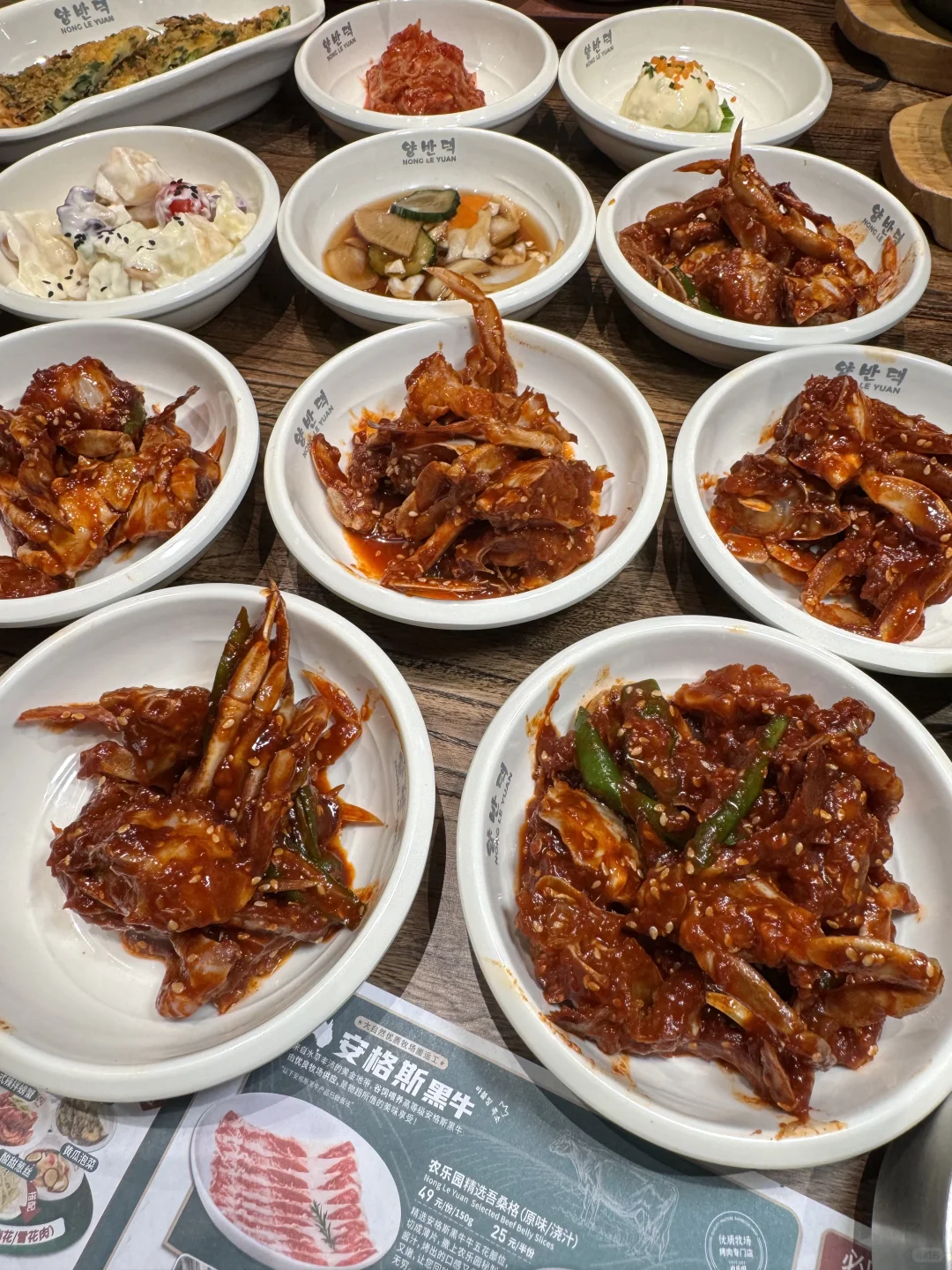 景枫终于也有这家超火的烤肉了,酱蟹、韭菜饼、水果沙拉、南瓜汤、生菜苏子叶子等等都是免费的,而且中午还送四种主食。