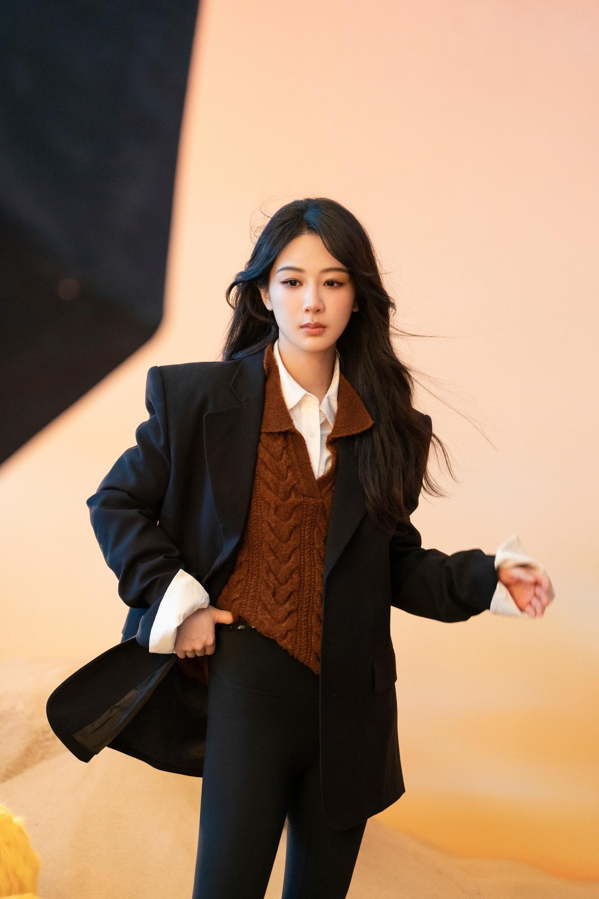 刘亦菲这条裤子挺养生,毕竟降温了肚脐眼必须护住啊