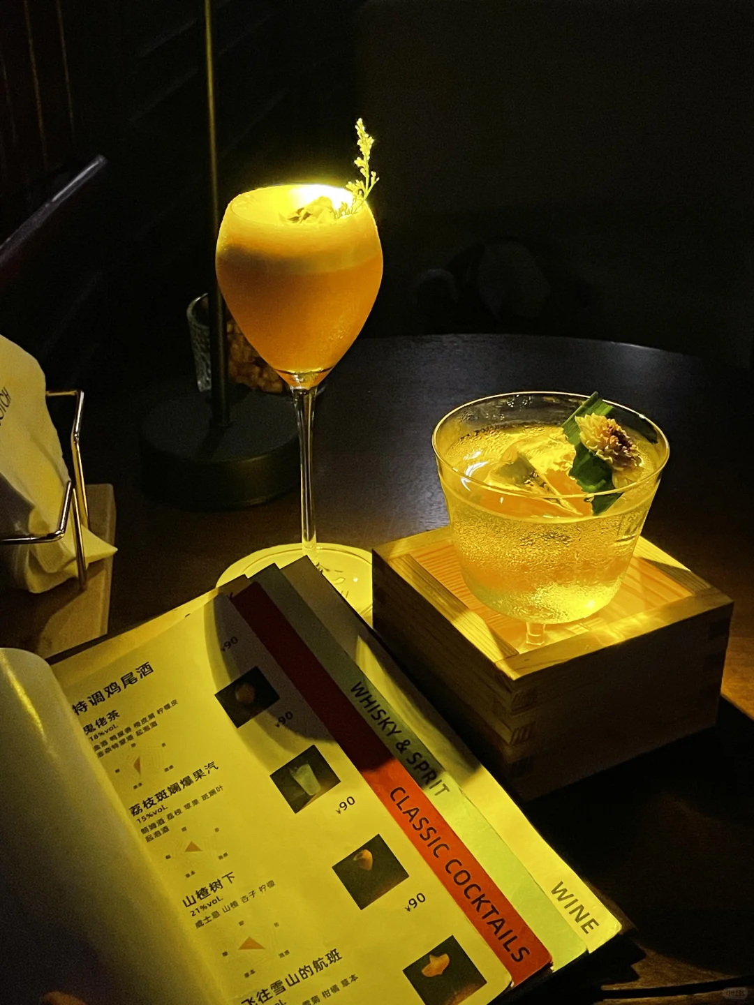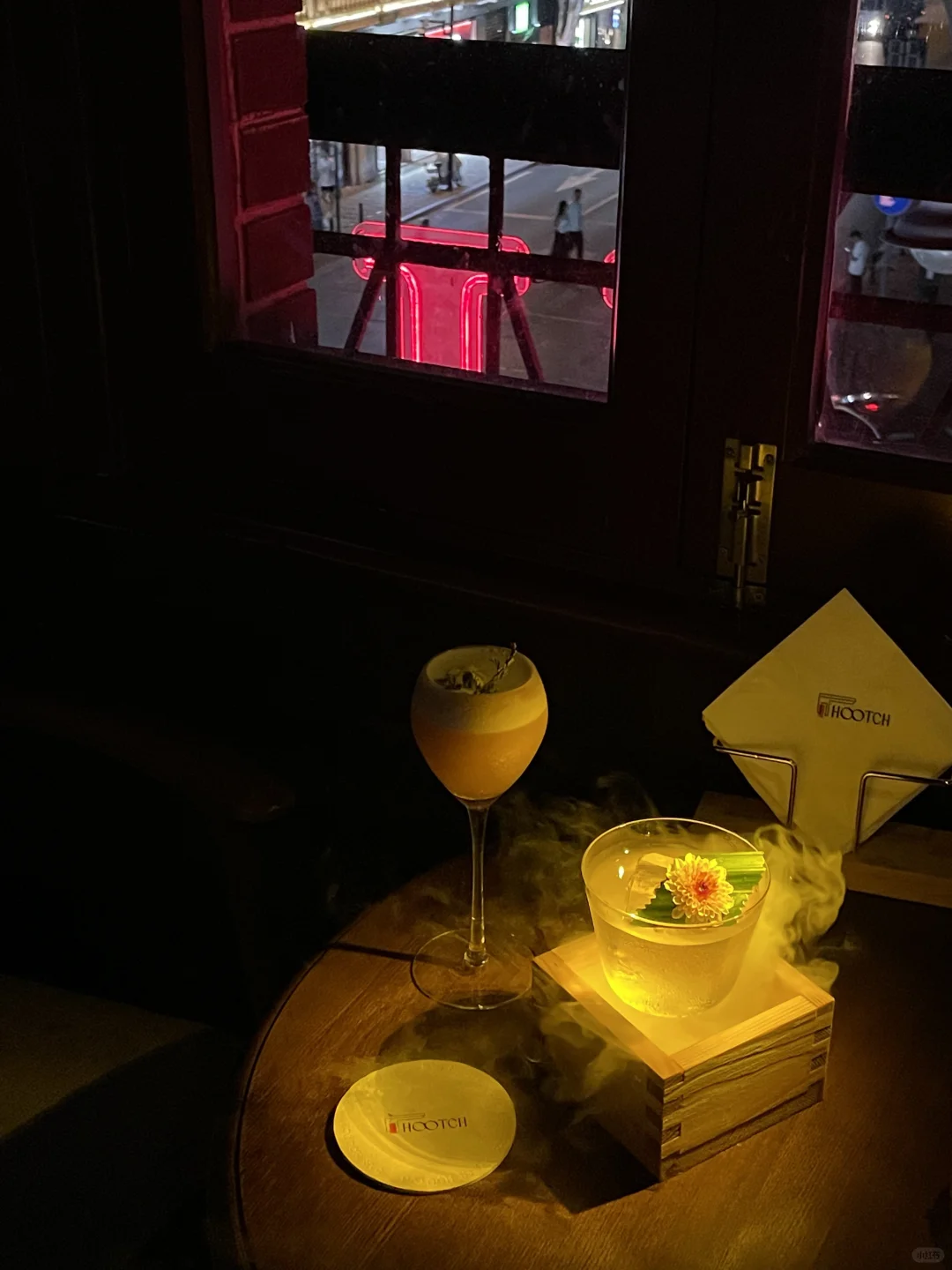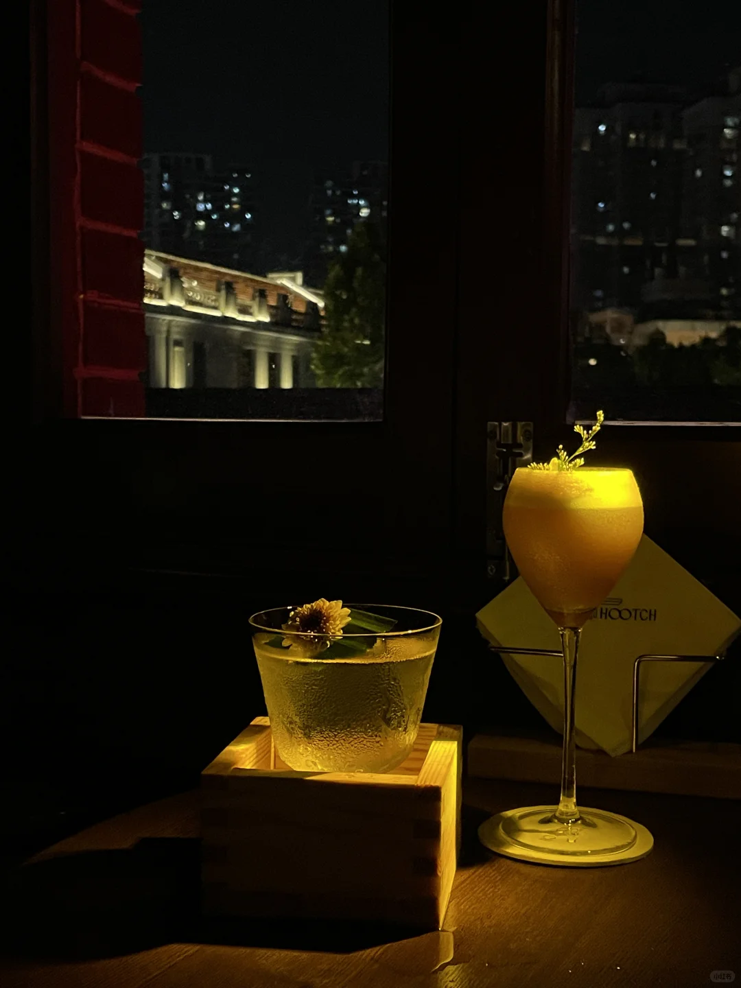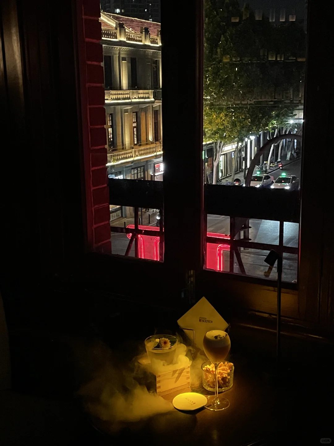 江汉路街边的复古bar 独栋复古洋楼很吸晴🏡 🚶走上红楼梯 暗调风格仿佛走进电影一般 - 二楼能俯瞰对面的武汉美术馆 繁华街头 灯红酒绿 坐在窗台🌃一首歌、一杯酒🥂 好像一整天的疲惫都已消散 - 独爱山楂树下/狂浪生香 🍹漂亮的分层 迷人的烟雾 酸甜口 酒味都恰到好处