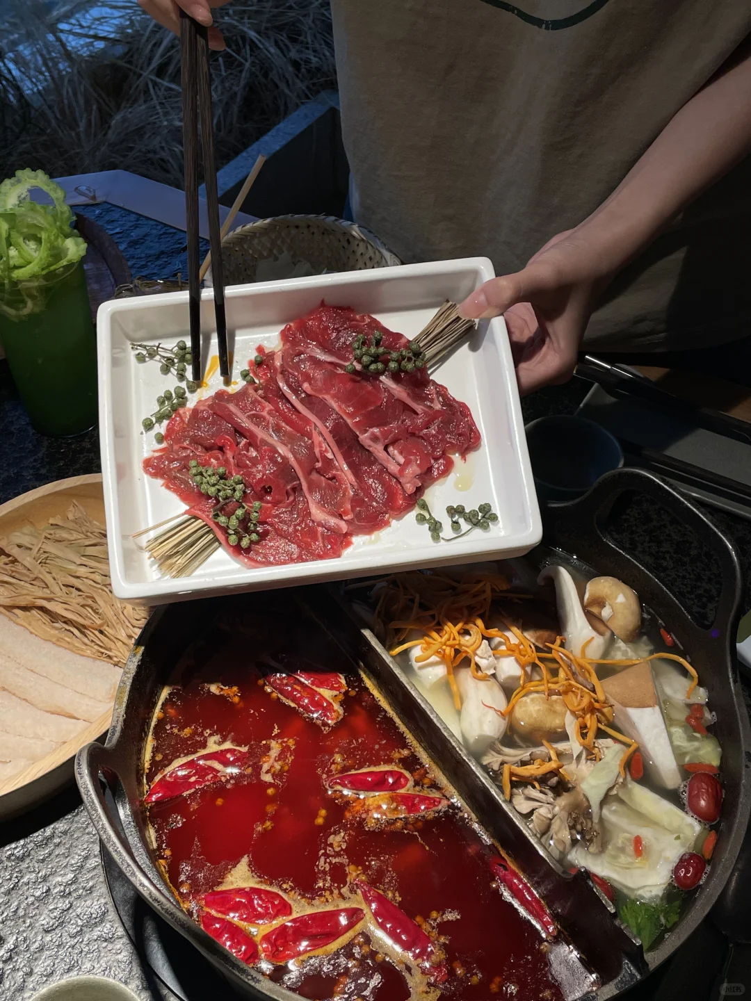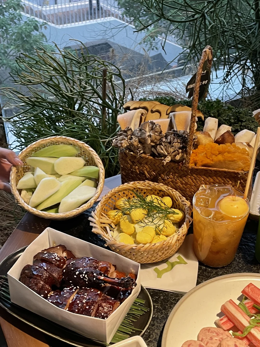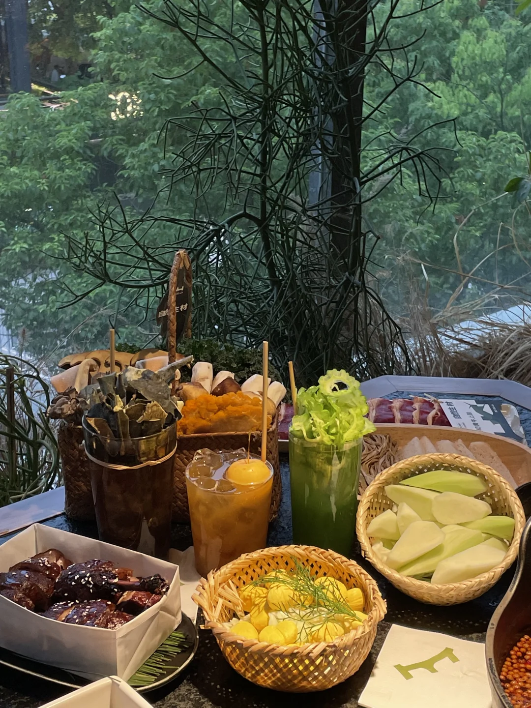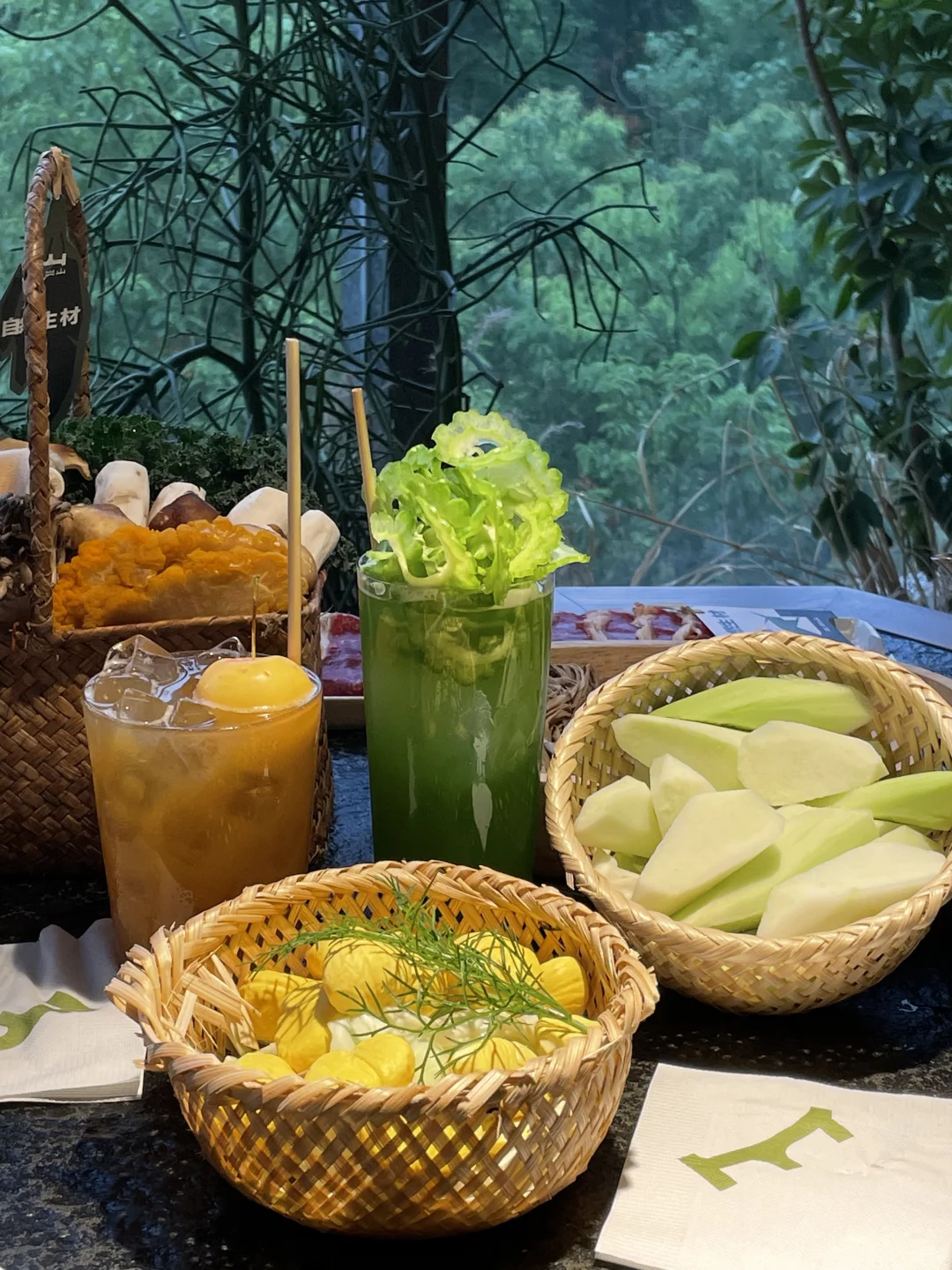 不在云南!是武汉的火锅店🍲 绿植围绕、彩色饮品和雪冰🍹 各种蔬菜和菌菇篮子 ⛰️真的好像在山里一样 每次来都必点山野菜和甜皮鸭 真的很鲜很好吃🤤🤤