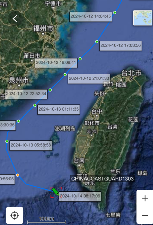 万吨海警船领衔,四支海警船编队彻底封锁台岛,环台岛巡航会成常态化? 随着“联合利剑-2024B”环台演练的展开,大陆4支海警船编队开始进行环岛巡航,4支编队由万吨海警船2901舰领衔。 根据AIS信号显示,万吨海警船2901舰目前位于台东蓝屿附近(图2),2102舰位于台湾海峡内(图3,应该是海峡东侧),1303舰位于高雄外海(图4),,1305舰位于台岛以北(图5,几小时前更新的)。此外辽宁舰已于10月13日通过了巴士海峡,显然是进入台湾东部海域进行演练,应对美军第七舰队航母的干预。 这是大陆海警船首次进行环岛巡航,也许在“联合利剑-2024B”环台演练结束后,海警巡航将成为常态化。