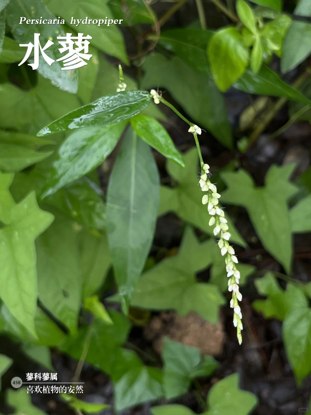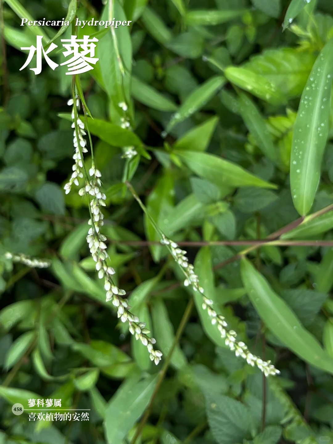 看到蕞多的是一种长在水边的蓼,通过查资料显示为水蓼。有学者颜师古介绍:“蓼有数种,叶长锐而薄生于水中者曰水蓼”。据说它叶片有辛辣的味道,比辣椒还辣,故而它有别名为“辣蓼”或“辣椒蓼”。