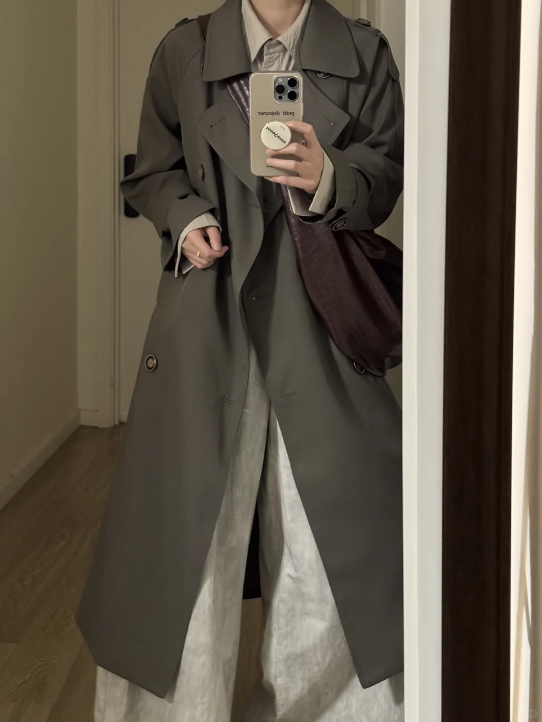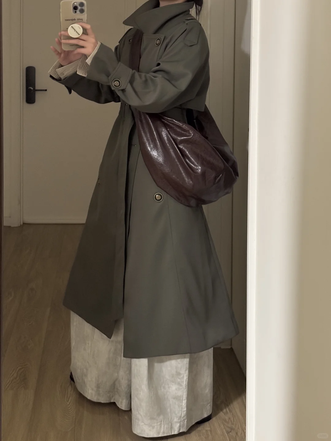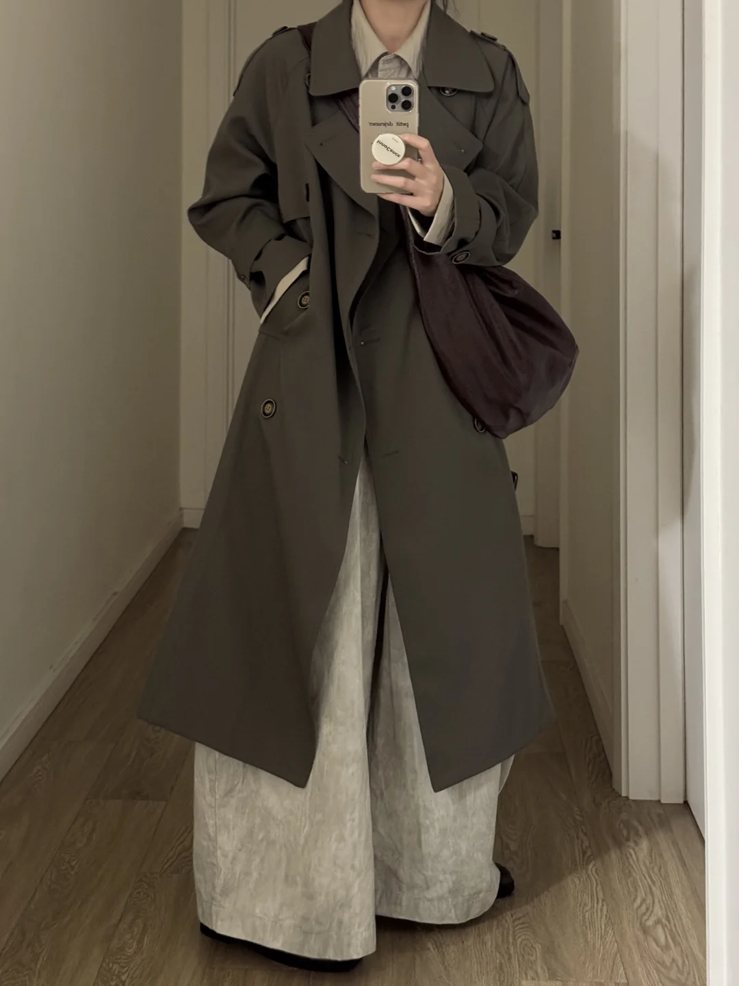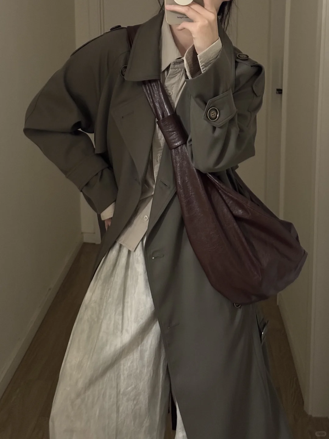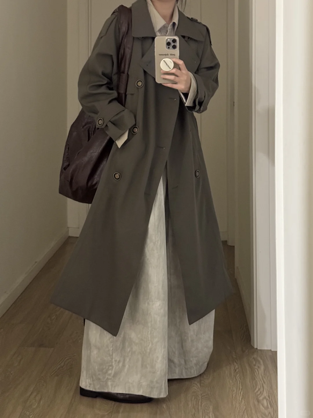 好秋冬韩系慵懒氛围灰绿风衣衬衫叠穿🫗