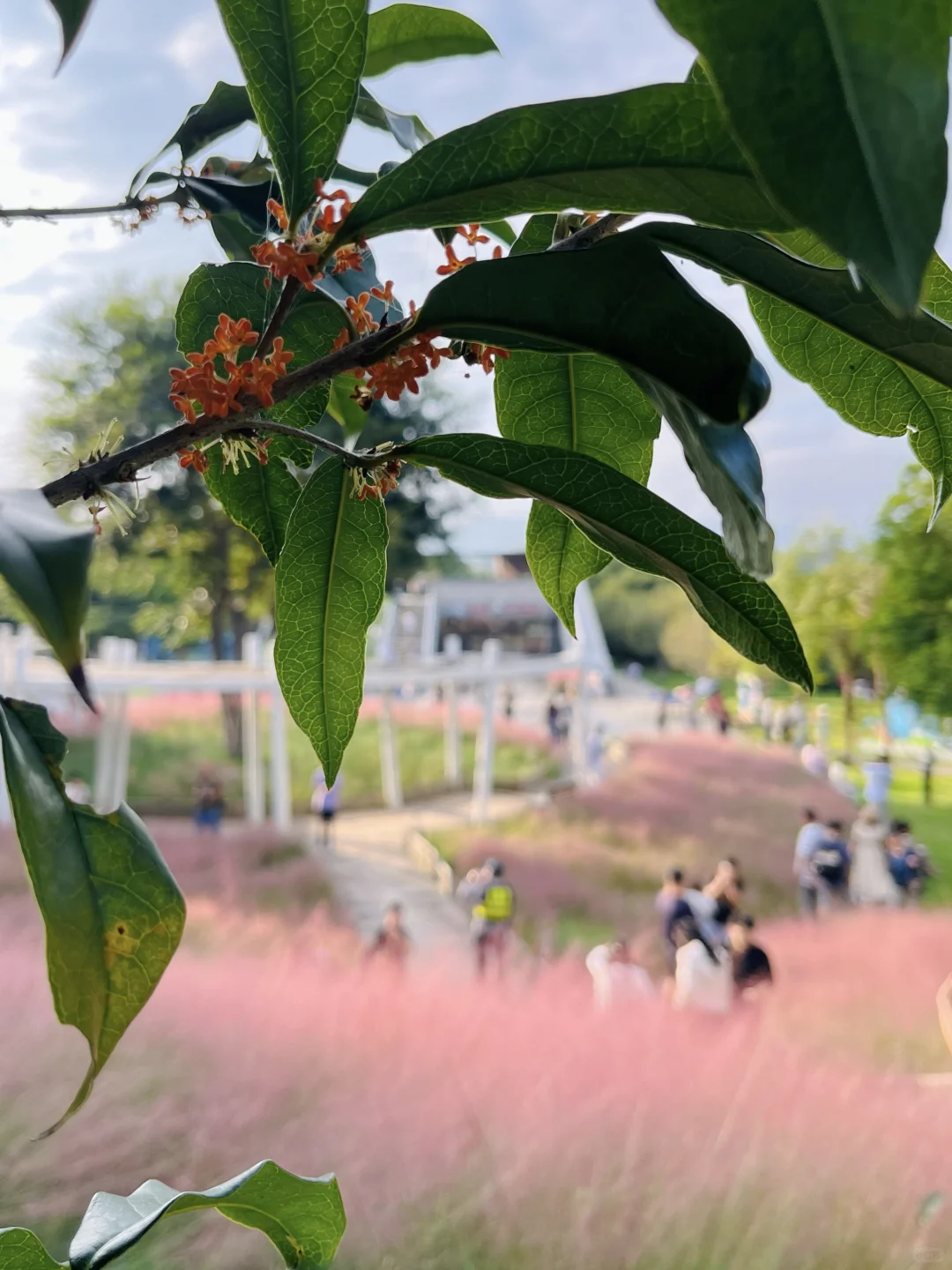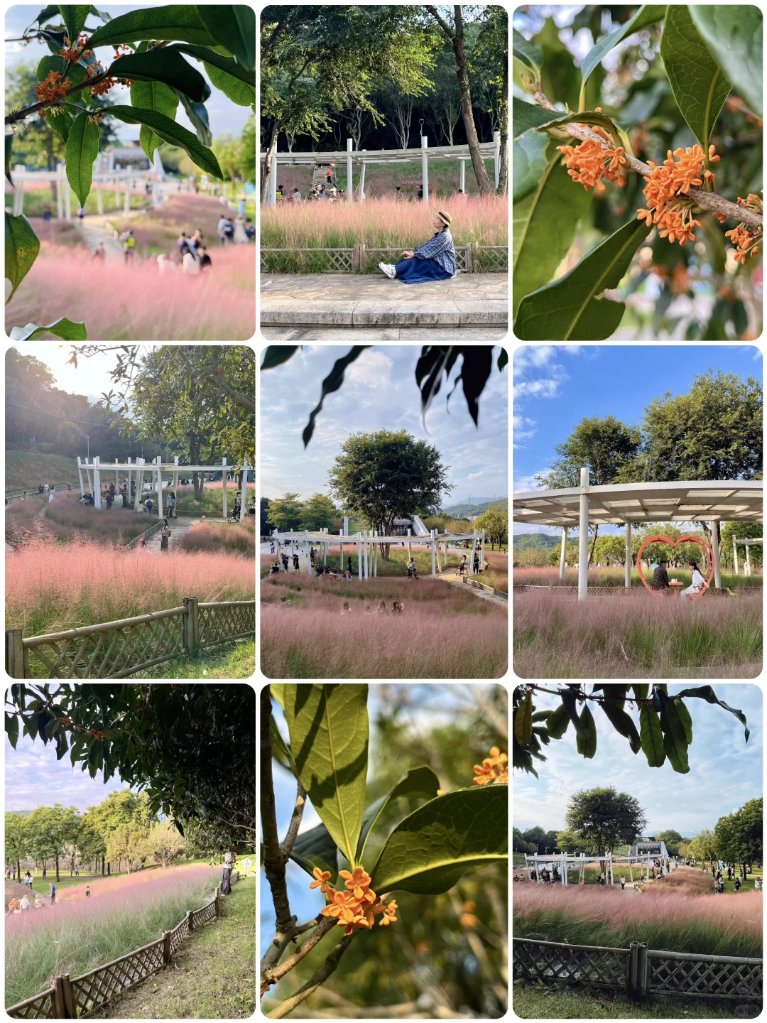 金秋十月间,牛岗山公园的粉黛乱子草与金桂、丹桂、四季桂三种桂花均已进入盛花期,组合形成香甜又浪漫的灿秋景象。 由于国庆前的台风天,福州的天气阴雨连绵持续数周,前几天才得以放晴,桂花终于一展沁人心脾的芬芳。公园的吸引力直线上升,带动赏秋游客前往品赏。 而今,粉黛乱子草也进入盛花期,配合蓝天、白云和“滤镜担当”太阳的全力协助,美如画。 浪漫的粉色花朵,似云似雾,仙气十足,让人仿佛走进童话世界。 话说,这景象有没有吸引到你呢? [偷笑R][偷笑R][偷笑R]心动不如赶快行动吧!!!
