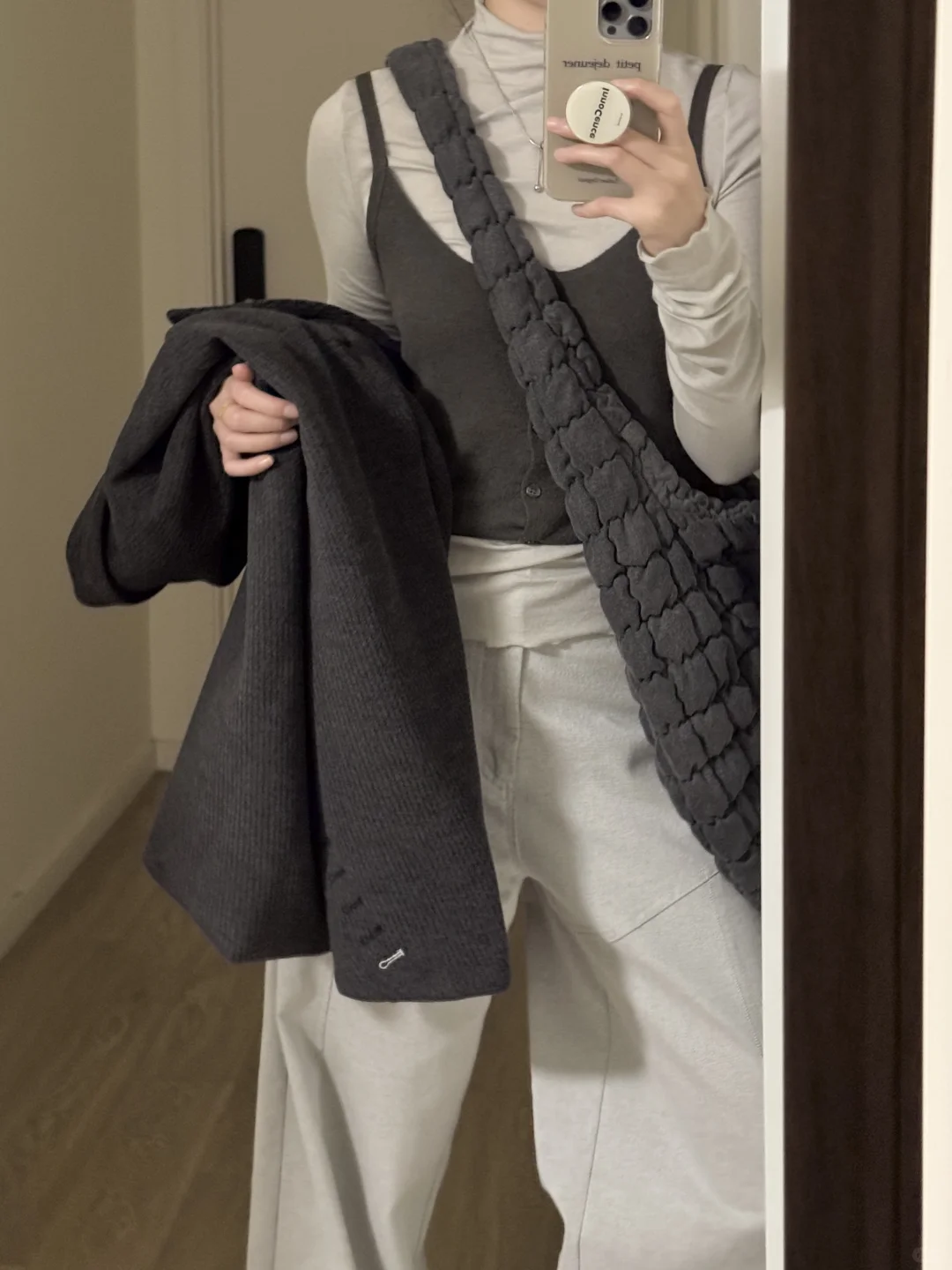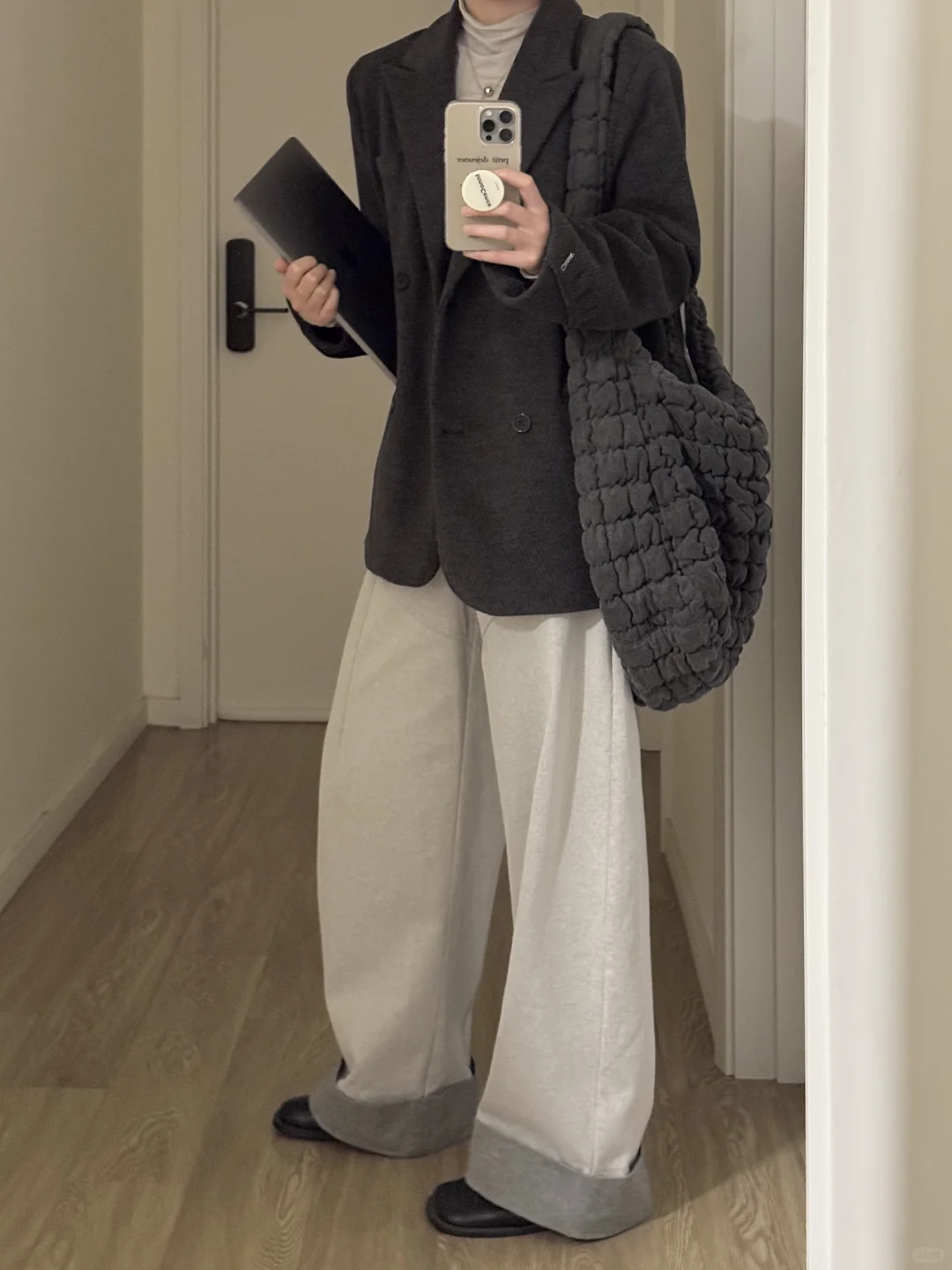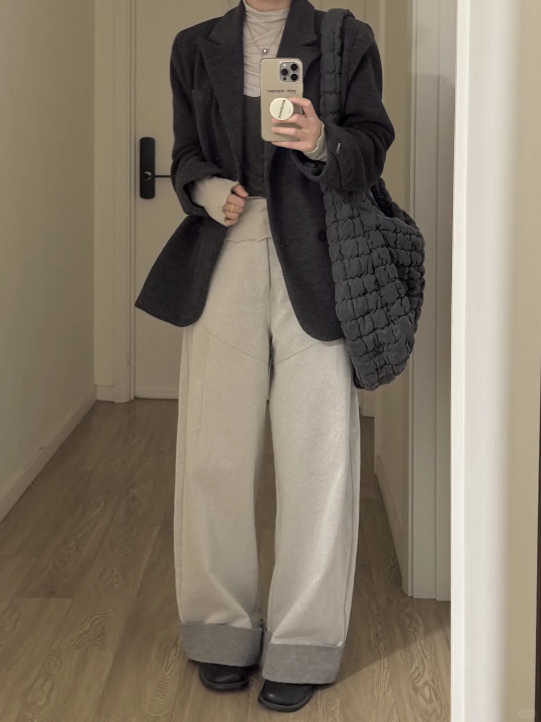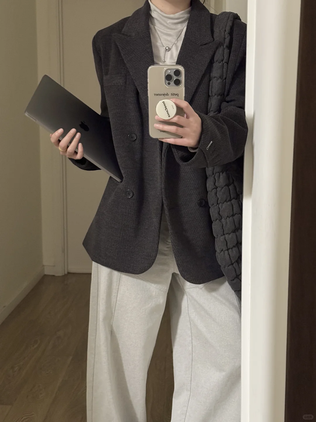 好秋冬韩系慵懒通勤灰毛呢西装外套叠穿🎥