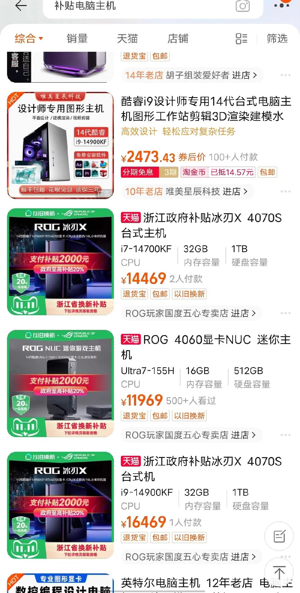 这补贴,还分机器吗?都是过万的,一万以下的就没有了,是找错地方了吗? 这几天,反反复复找,听说国家补贴20%呢,一万块,就省2000,平台再补点,是不是7000多,就能弄个上万的电脑。可。。。左右左右,找不到能领补贴的那一块呀!