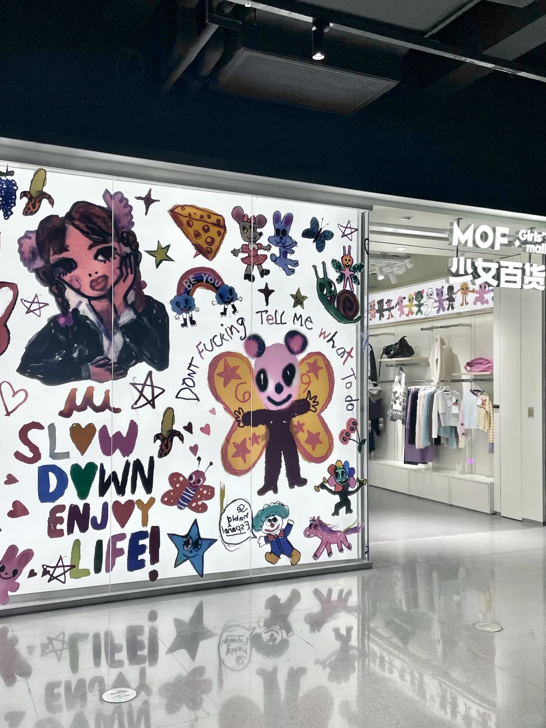 好辣好韩的新店😆 可以列入一直逛的清单啦 💕喜欢她家的褶皱T恤 穿起来显瘦又显白 再搭配一条低腰裤 店里还有很多配饰和包包 涂鸦系列的单品很有意思