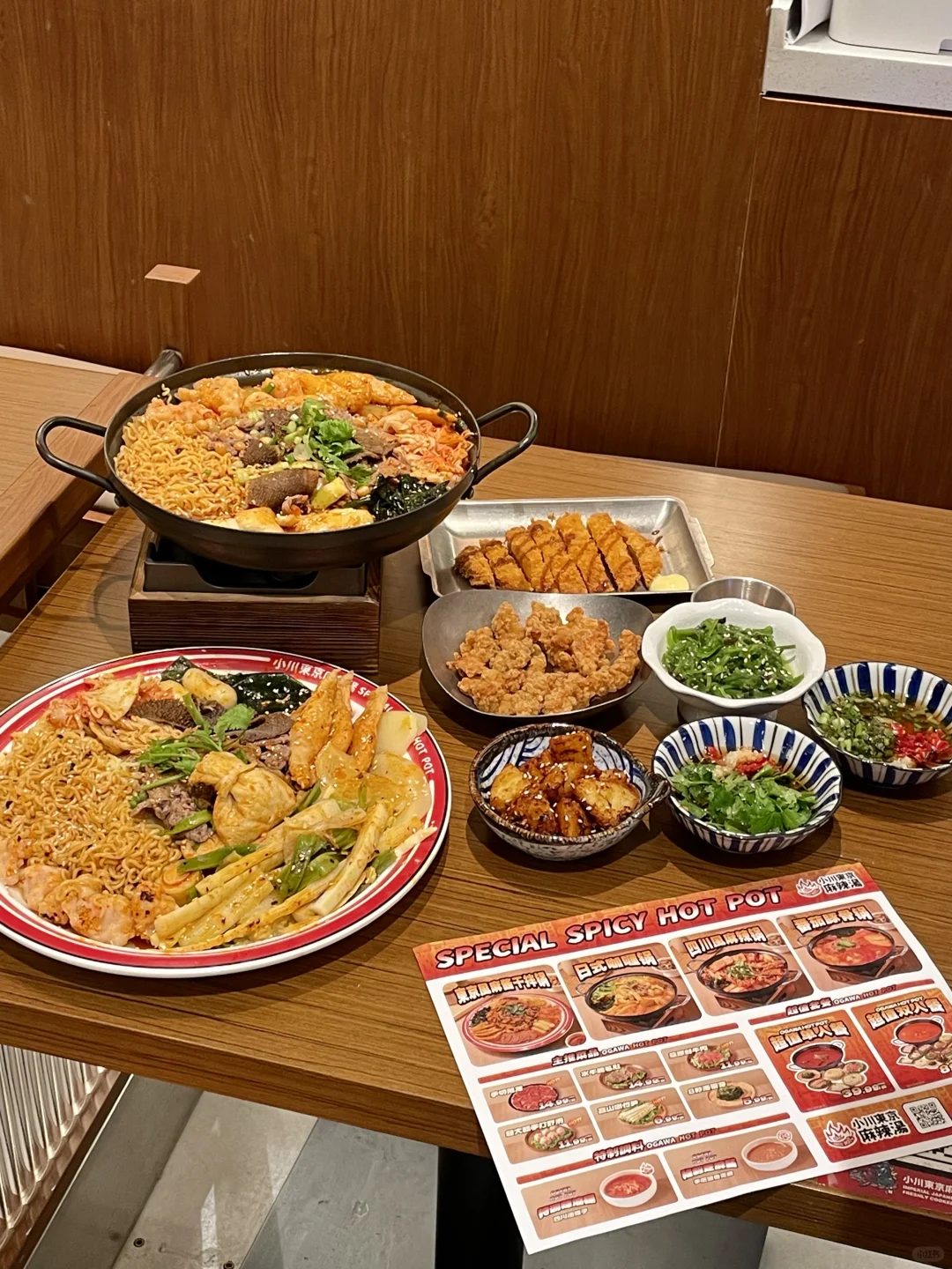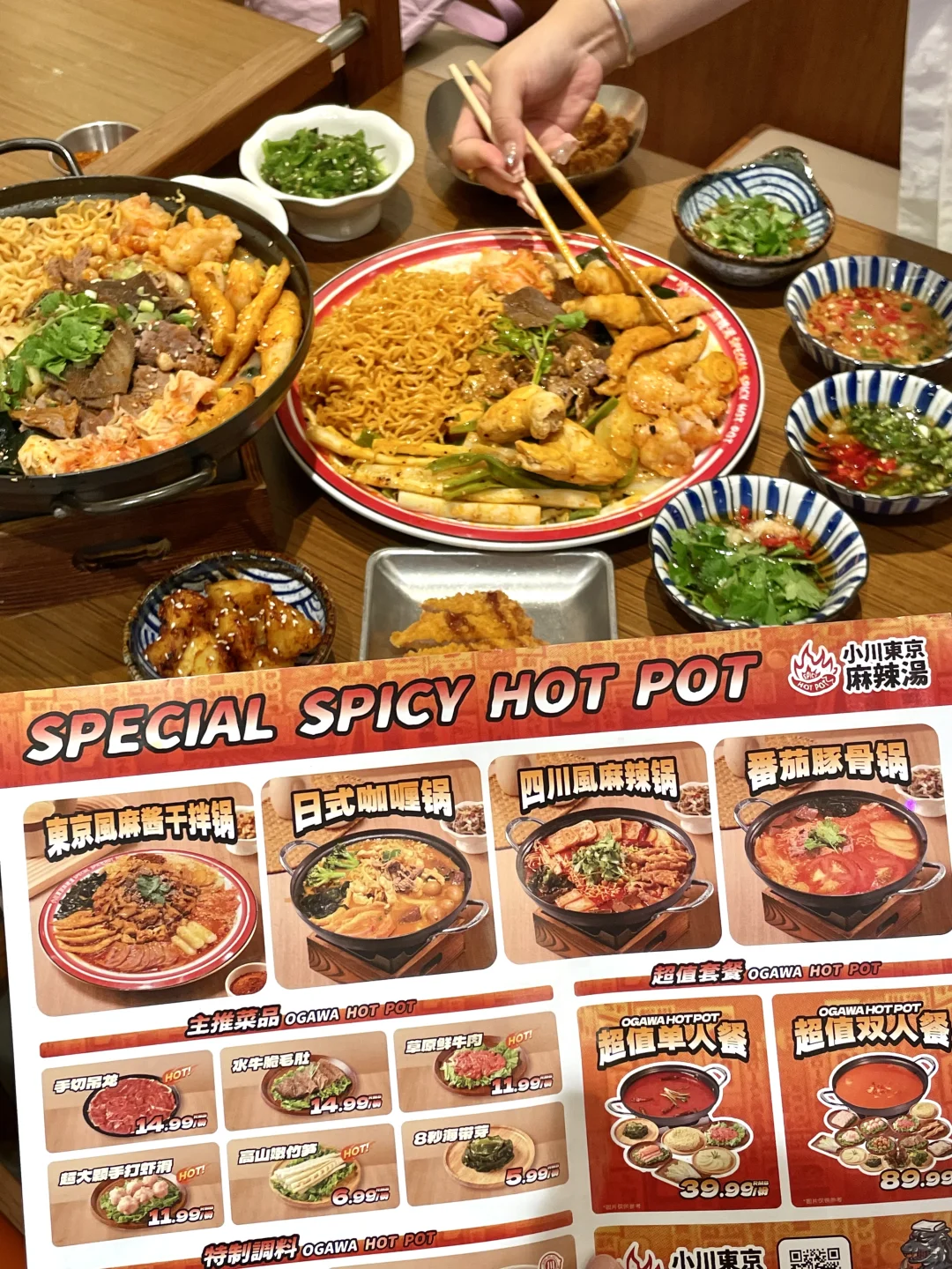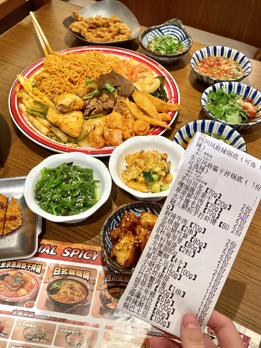 国广新开的! 人均几十吃到饱的麻辣烫 - 🌶️干拌和麻辣汤锅的 当然要各来一份! 这家菜品种类巨多 手切吊龙肉质鲜嫩 水牛脆毛肚脆脆的有嚼劲🥢 还有新鲜的莴苣、贡菜8秒海带芽… 满满一锅都是我爱吃的 门口还可以自己调味碟 想吃辣就多加点辣!😌