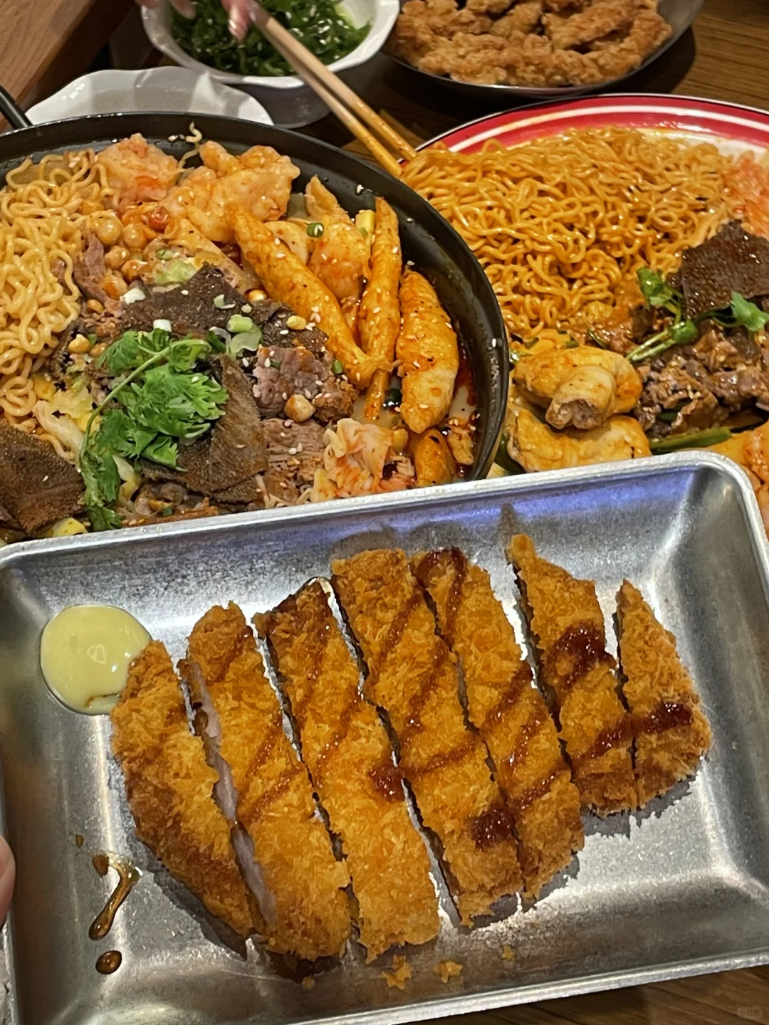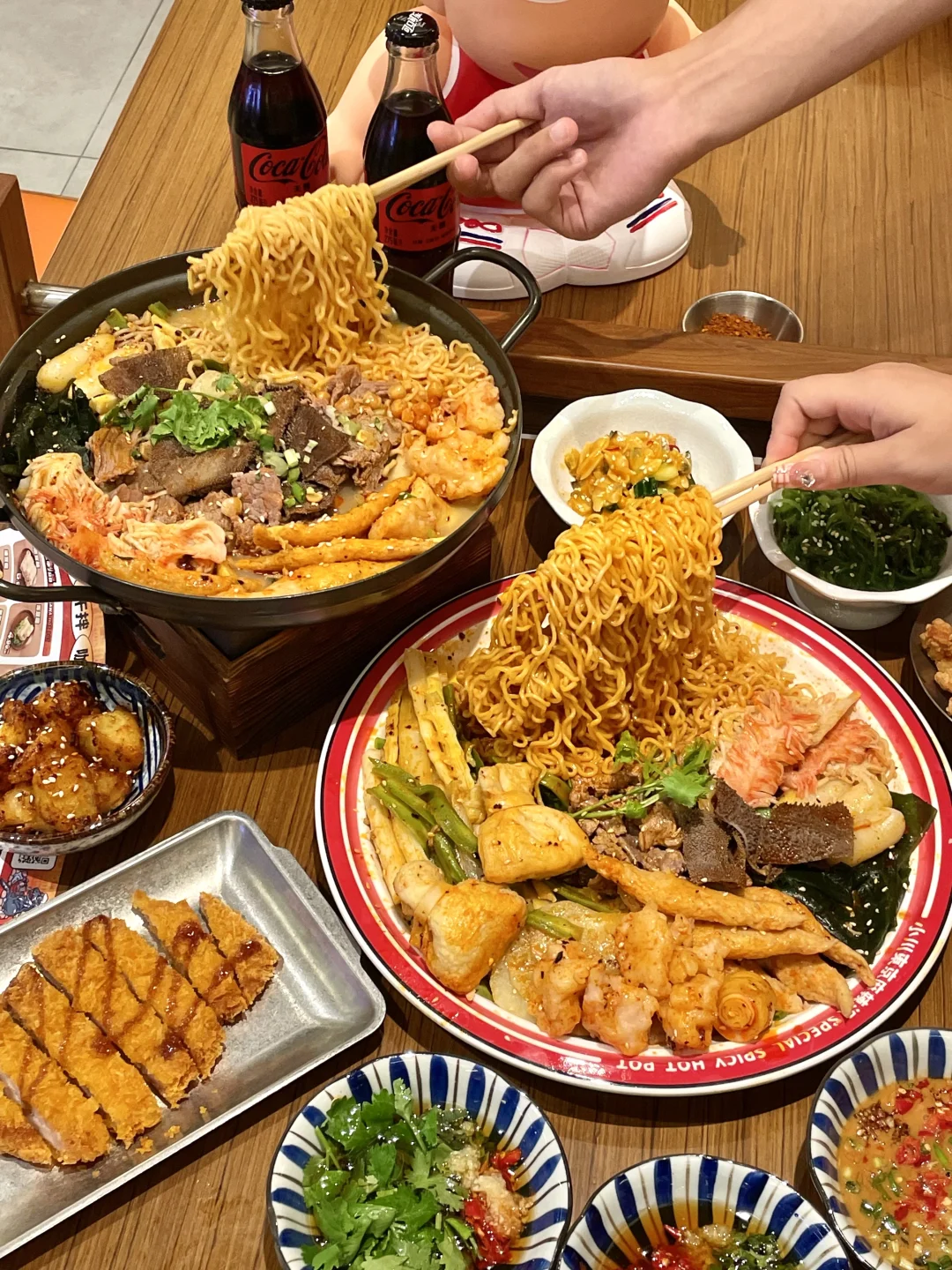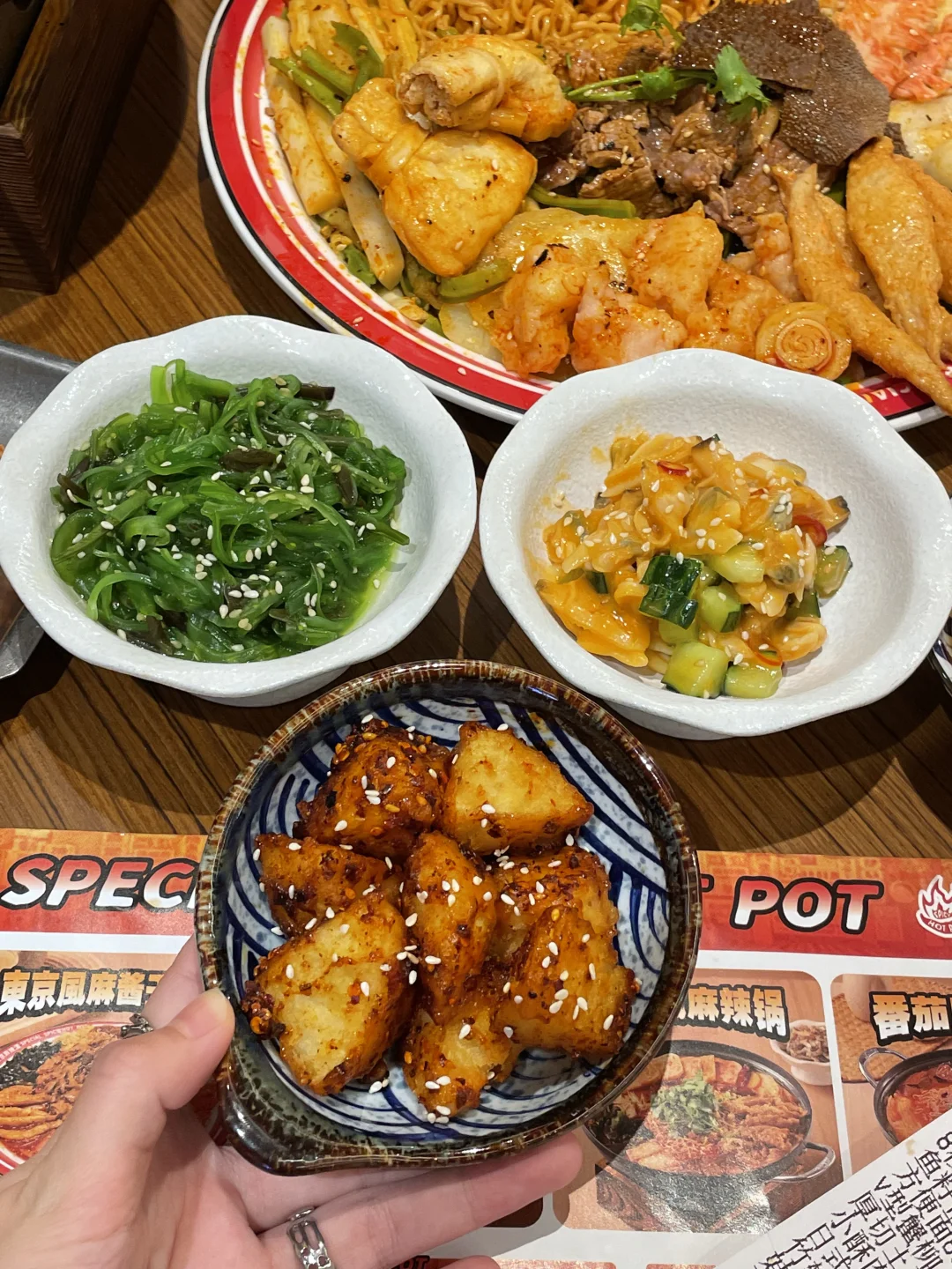 国广新开的! 人均几十吃到饱的麻辣烫 - 🌶️干拌和麻辣汤锅的 当然要各来一份! 这家菜品种类巨多 手切吊龙肉质鲜嫩 水牛脆毛肚脆脆的有嚼劲🥢 还有新鲜的莴苣、贡菜8秒海带芽… 满满一锅都是我爱吃的 门口还可以自己调味碟 想吃辣就多加点辣!😌