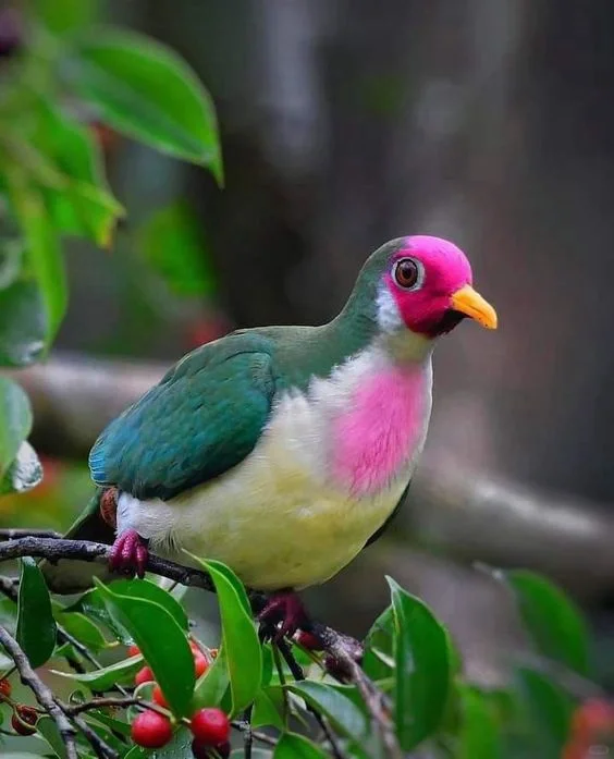 🍀粉头果鸠分布于泰国南部、马来西亚、印尼的加里曼丹、苏门答腊、爪哇、新加坡及文莱,栖息于红树林沼泽与低于1500米的低地雨林,也生存于次生林中。