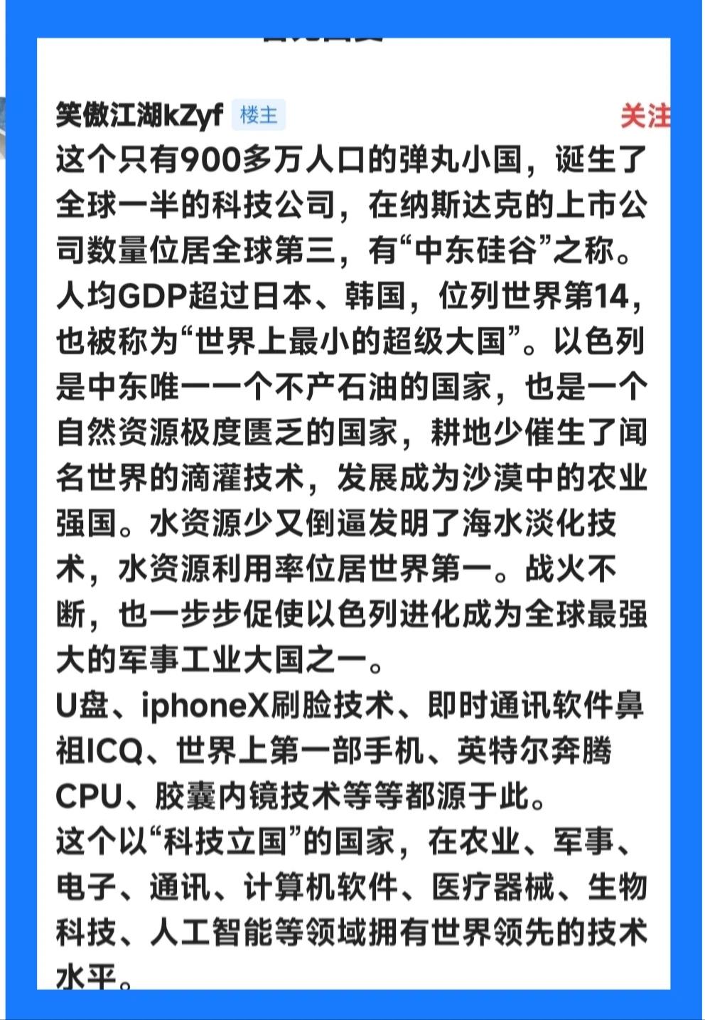 有些我已经说过很多次了,不重复了,这回着重讲一哈:第一台手机,英特尔奔腾CPU都是人家发明制造出来的,这就很打脸那些用手机痛骂以色列的人以及只怕到现在都在用着奔腾CPU的广大用户群体——忒无耻!