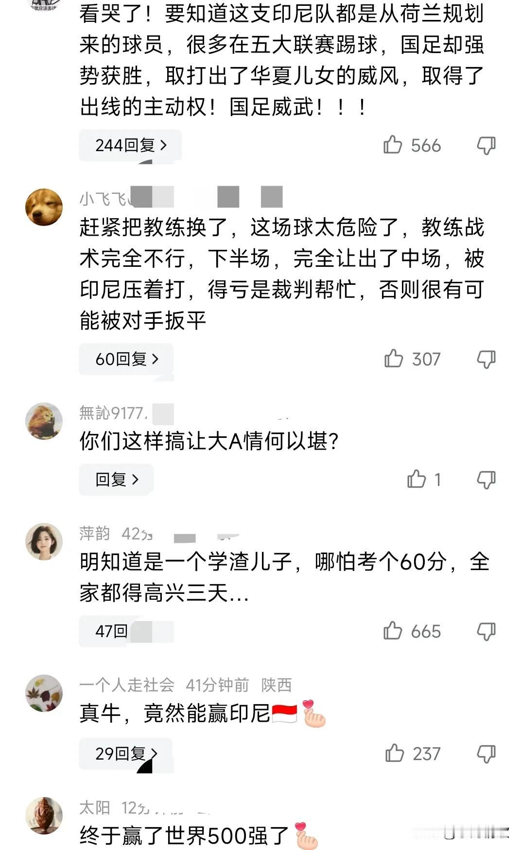 这是飞一样的感觉。国足2:1击败印尼。能表达我心情的一句歌词就是汪峰歌曲的一句歌词:这是飞一样的感觉。 终于赢了,三连败之后,幸亏没有4连败,印尼进了一个球,让人感到有点慌,但好在最后他们没有进第2个球,我们拿下胜利。 张玉宁踢进一个球之后,由于过度庆祝竟然下轮停赛,这判罚也太严苛了吧,给点面子嘛,不要这么狠嘛。 不管怎么样,希望下一场比赛能够取得胜利。 虽然之前国足表现的不怎么好,但国足永远是我们的主场,是我们的主队。 在球迷眼中,哪怕自己的孩子考得再差,那也是自己的孩子啊。 无论中国队的成绩怎样,球迷们都会义无反顾地支持国足。 加油吧!国足!#终于赢了!国足2比1击败印尼#