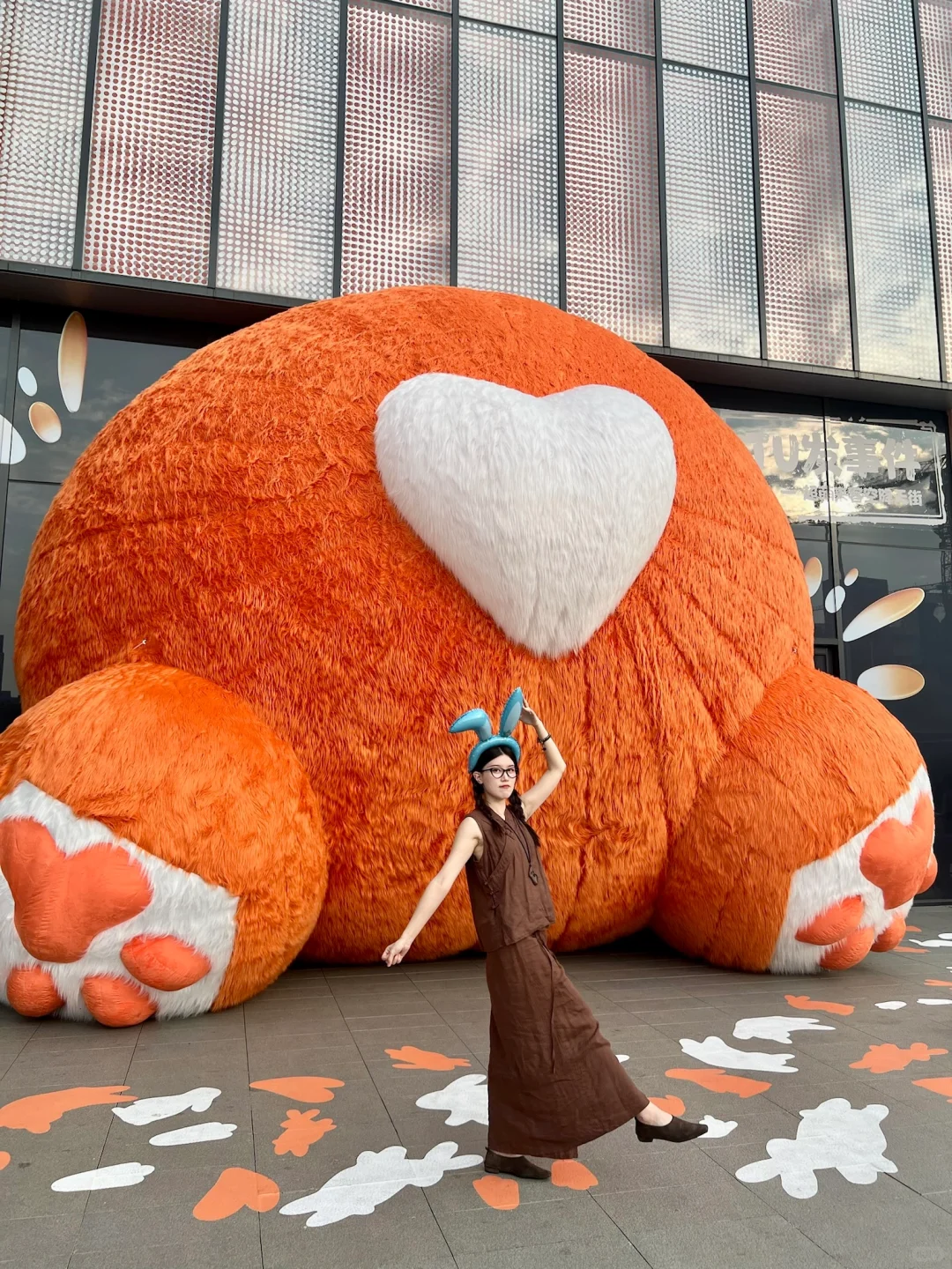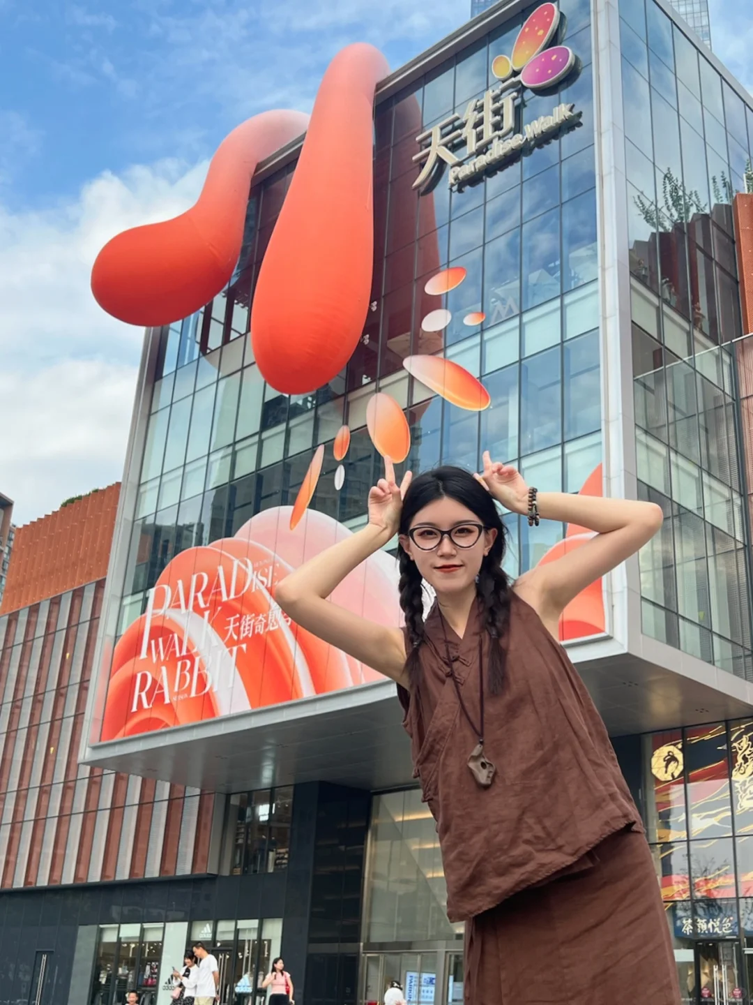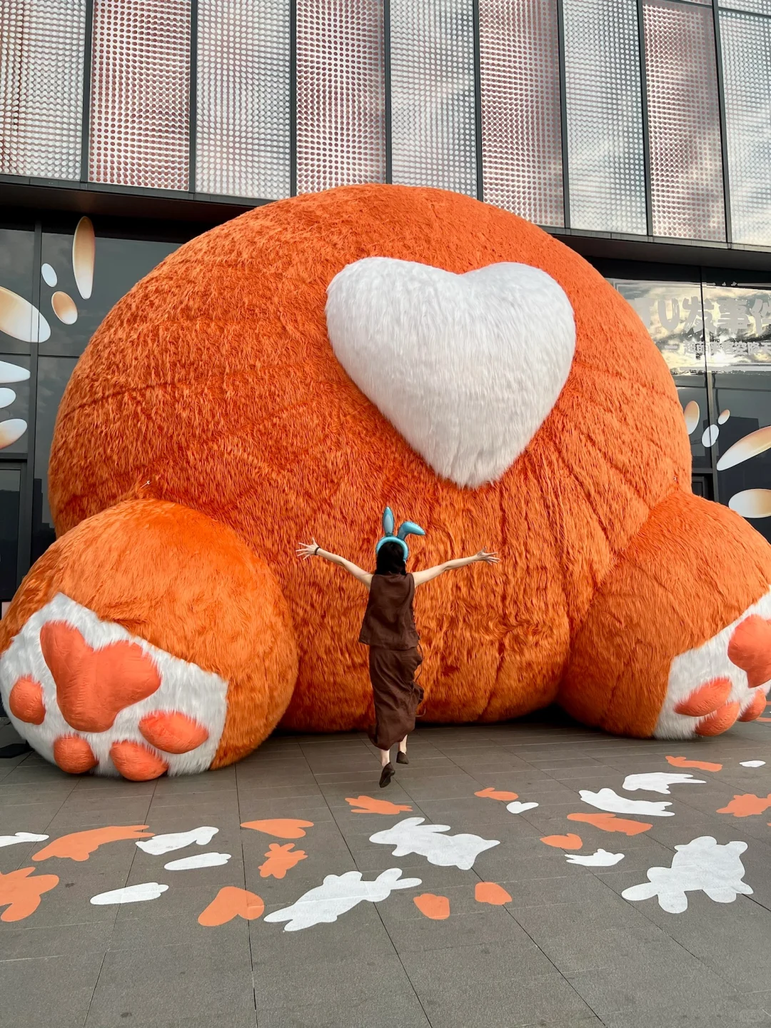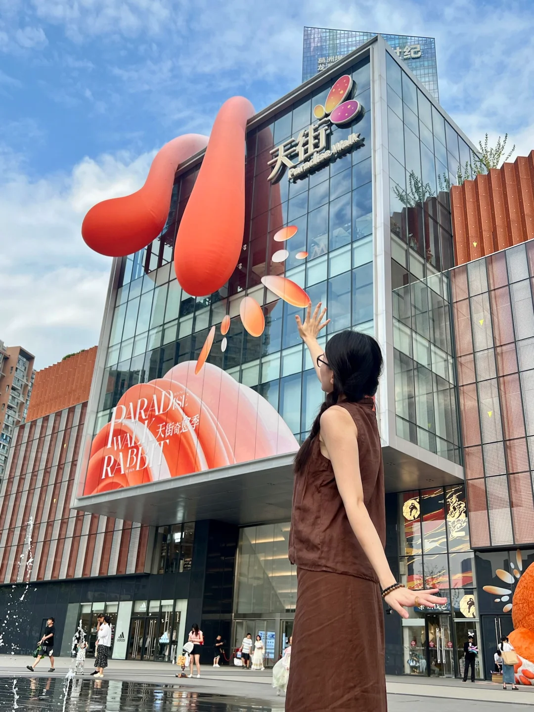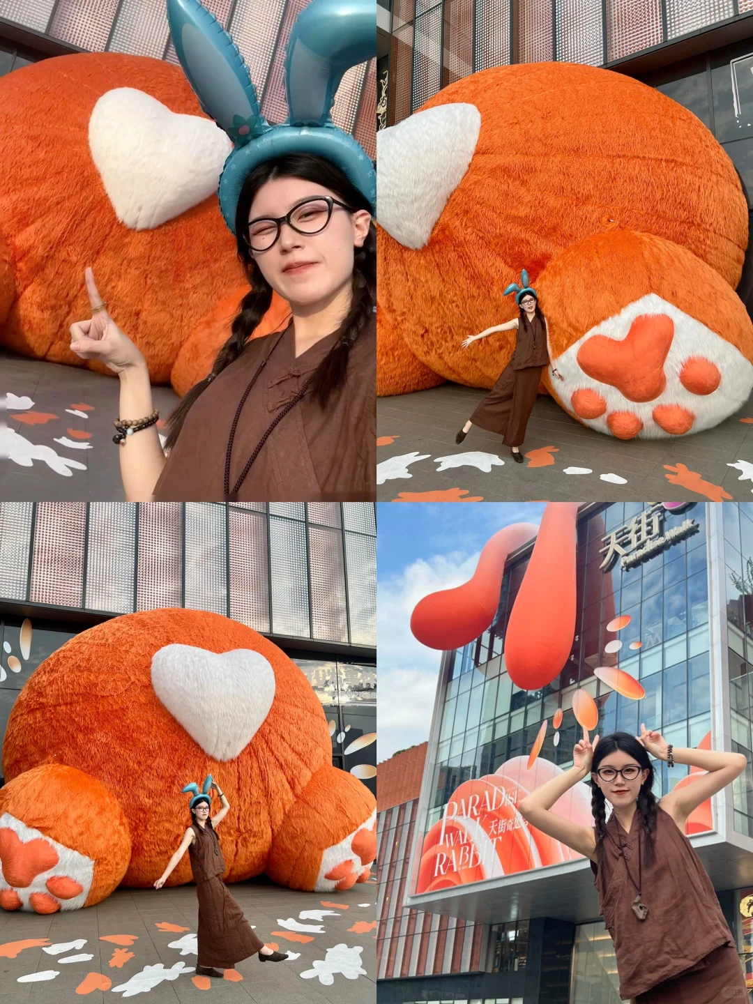 武汉又在搞大事情🥹 路过天街看到一只巨型钻墙兔🐇 🐰随风吹动的毛毛看起来很好rua 还有天上的兔子耳朵可可爱爱的!