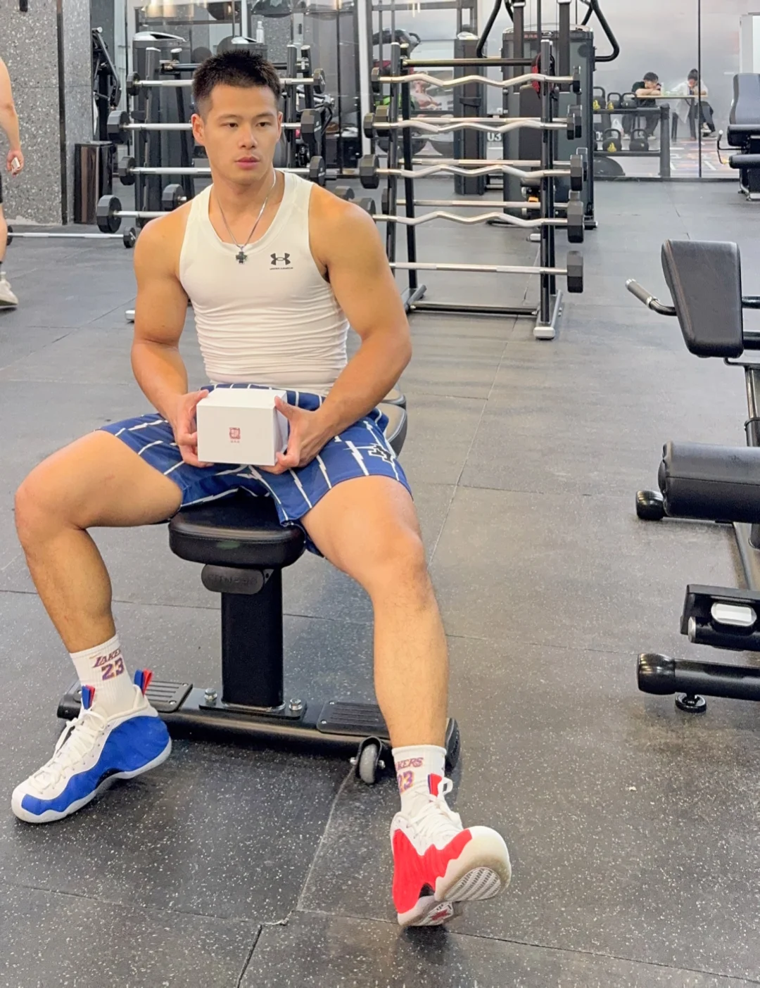 运动后放松时刻,穿红色卫衣,享受宁静时光。