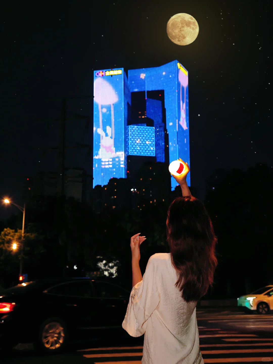 晚上去逛金鹰世界 远远的就发现 大屏上已经有月亮和兔子🐰满满的中秋氛围感! 全南京一起在等月圆啦~
