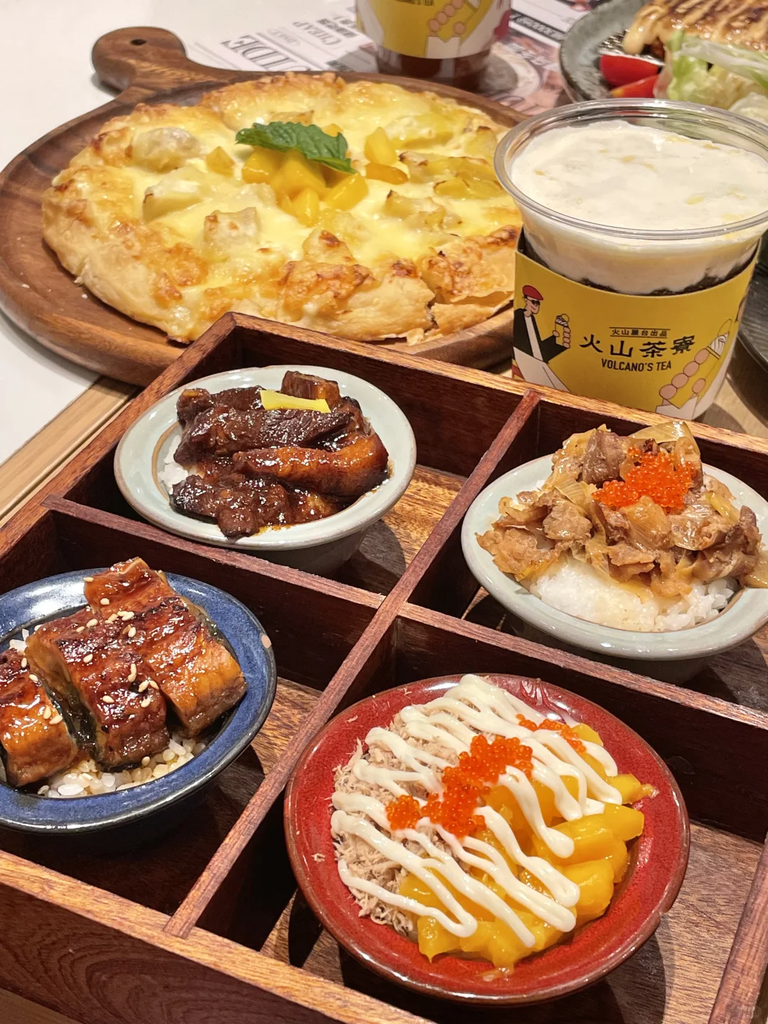 两个人来梦时代 不知道吃啥就来这家!不贵! 原木风像漫画小屋 - 奶油顶的咖喱乌冬面很香! 刚出炉的芝士拉丝紫薯可馋人了🥹 还有屋台一口饭一人两碗刚刚好!