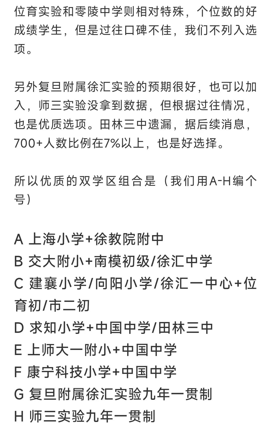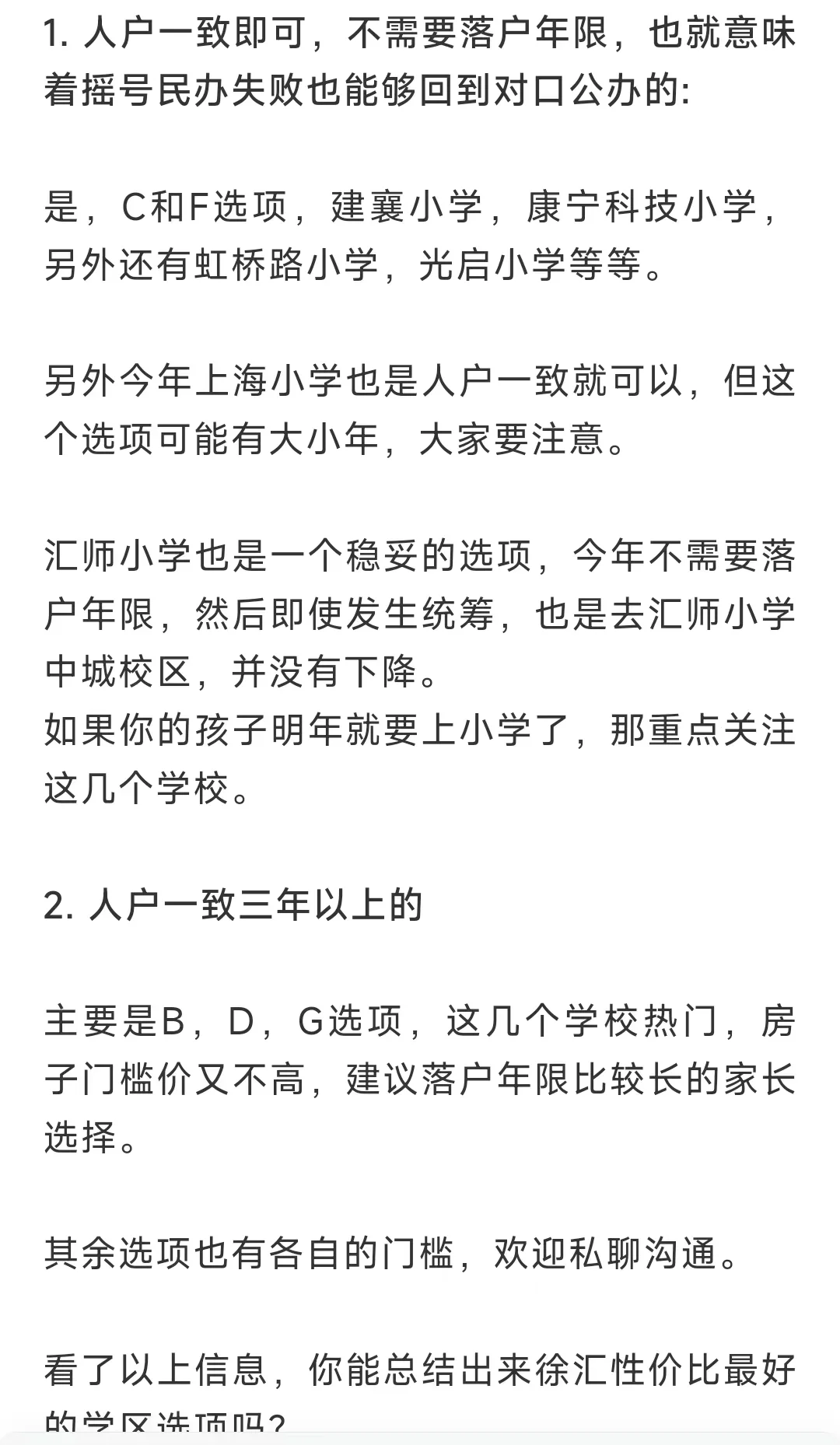 我来总结一下,落户年限短的买上海小学(略有风险),康宁科技小学+中国中学,汇师小学+徐汇中学/市四中学(统筹也去汇师南),虹桥路小学+南模/徐汇,预算充足的上建襄