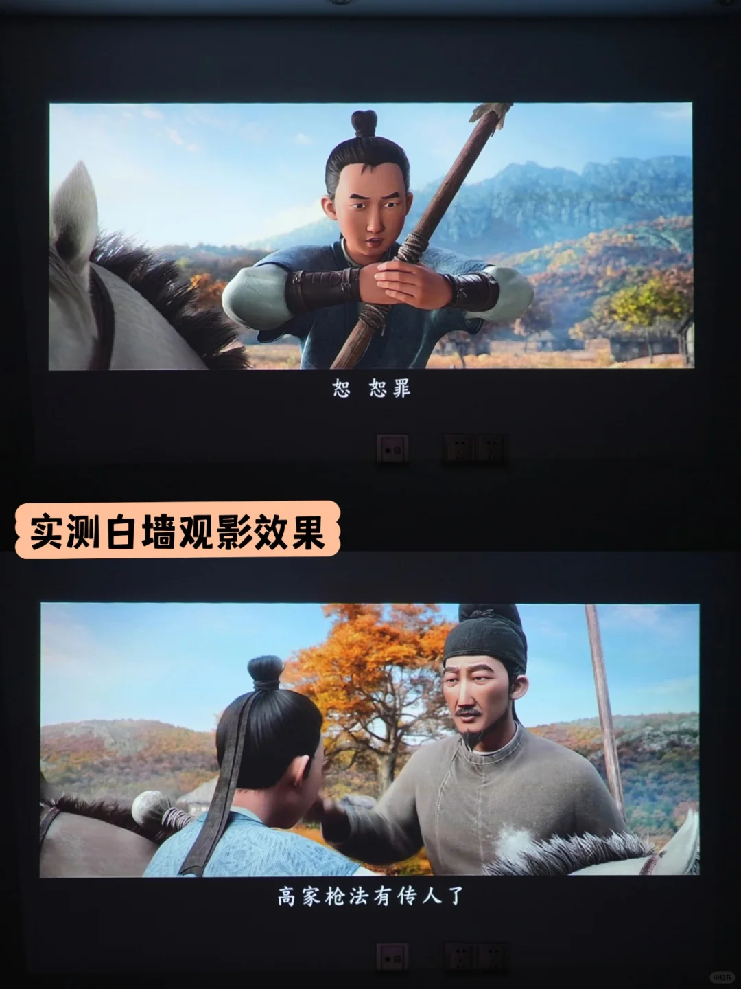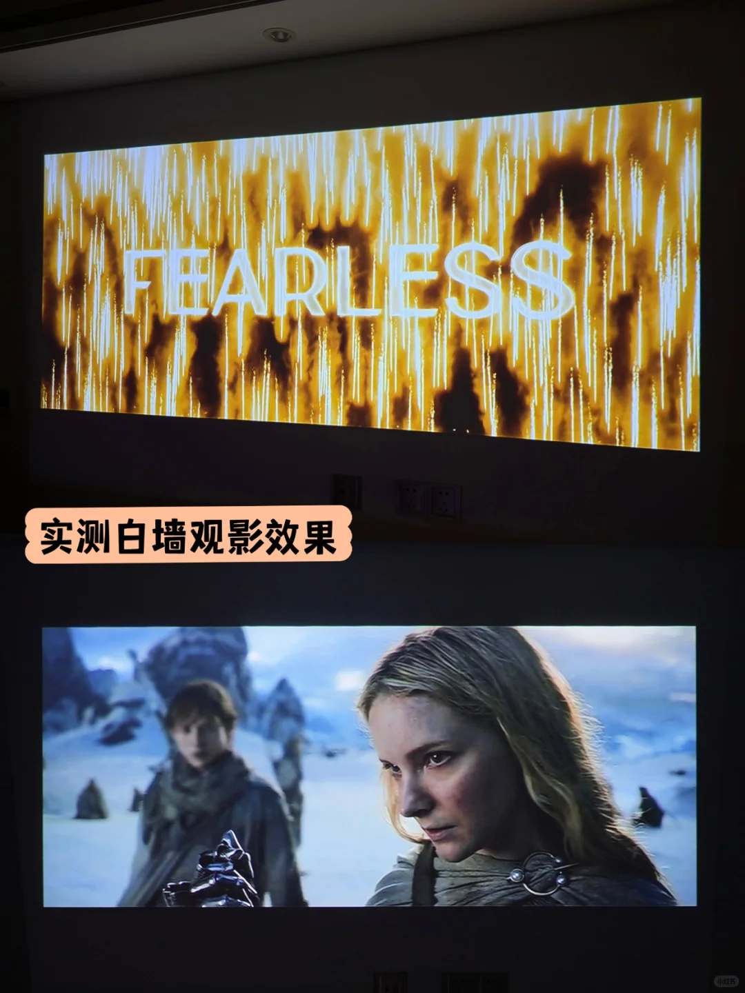 2.高亮度+清晰画质:DLP技术下,1080P的画面非常清晰。500CVIA亮度实测比较真实,拉上窗帘或者晚上观影完全足够,侧投也不虚焦。