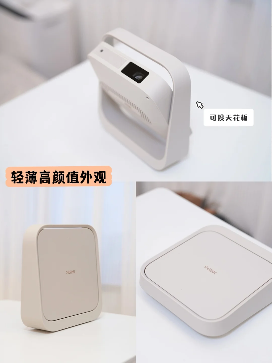 3.高颜值+轻薄便携:外观颜值很高,米白色系可以融入家居风格,也不占位置。重量只有1.09kg,还可以单独配电池支架,可以带出门。