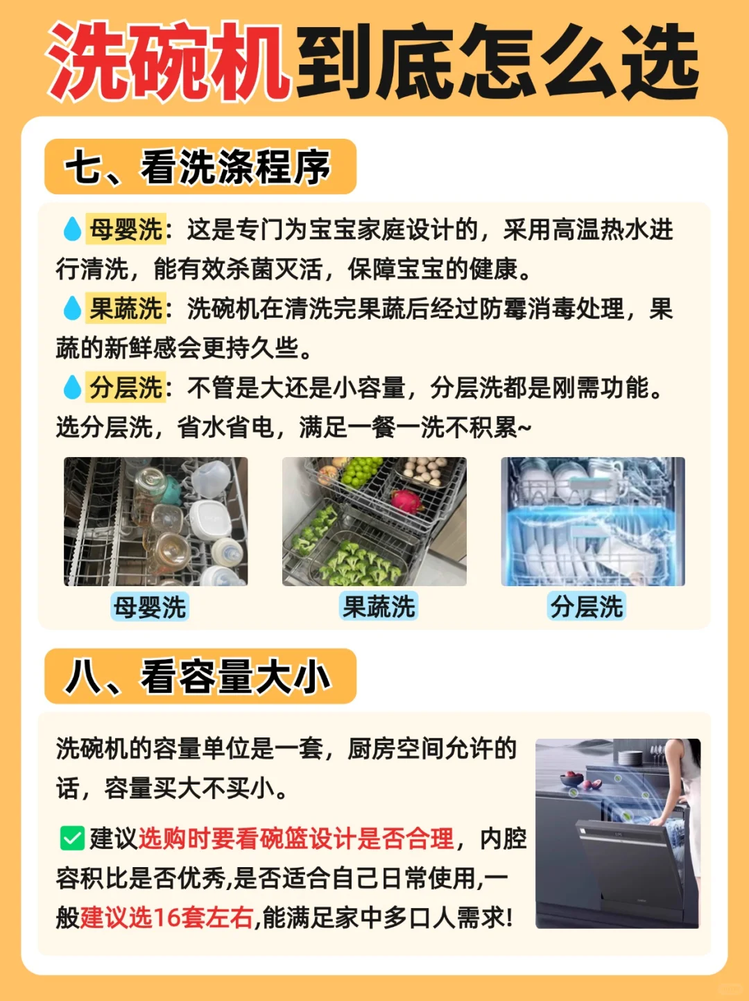 ✅最后说容量✔️容量买大不买小,还需要看碗篮设计是否合理,内腔容积比是否优秀,一般建议选16套左右,能满足家中多口人需求!
