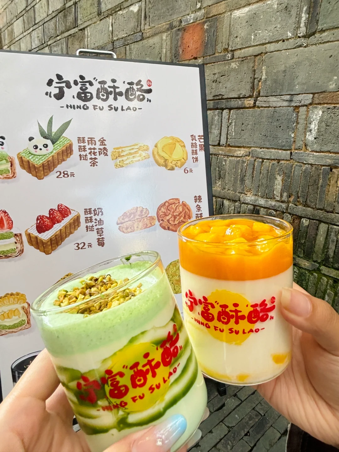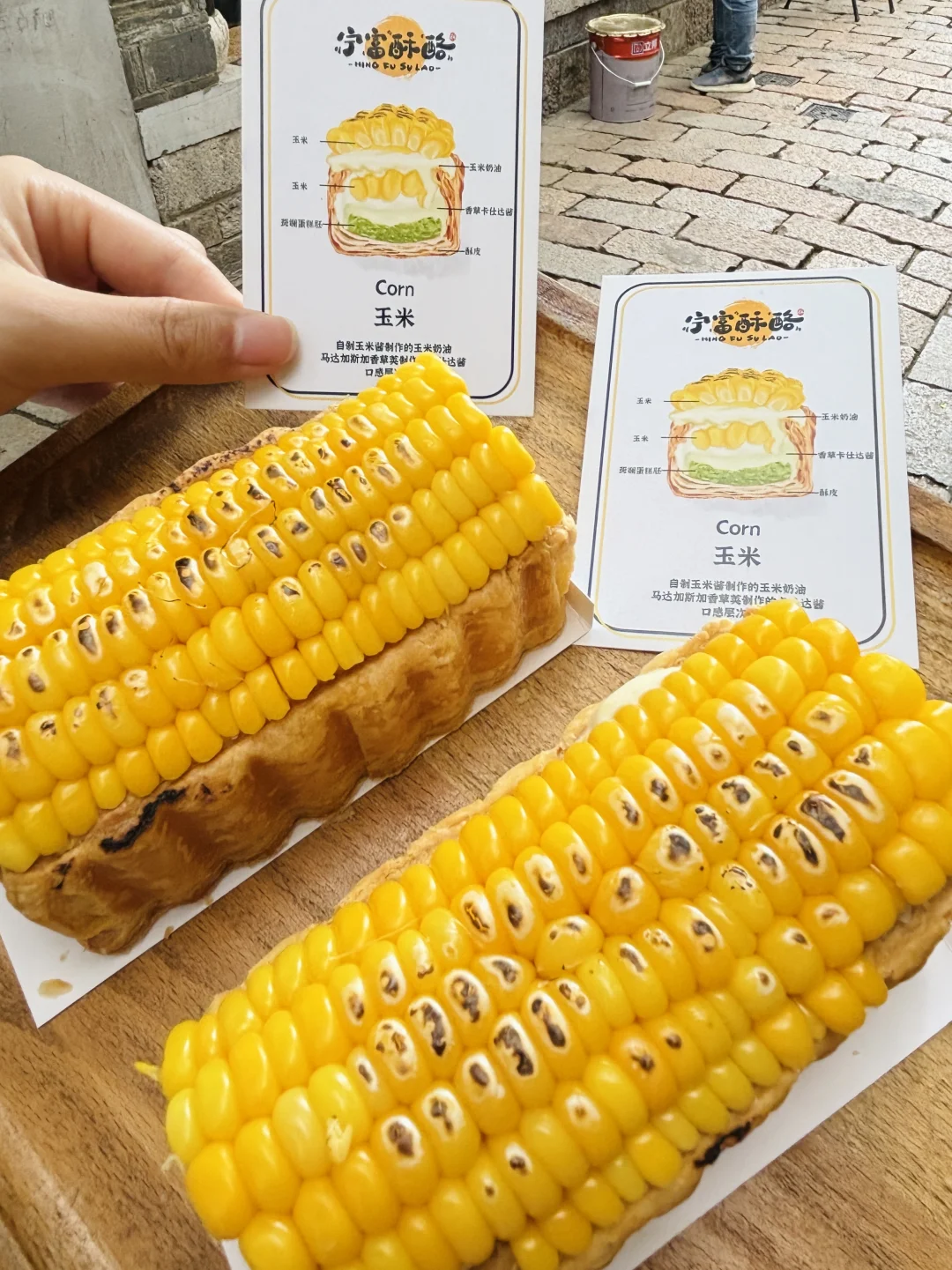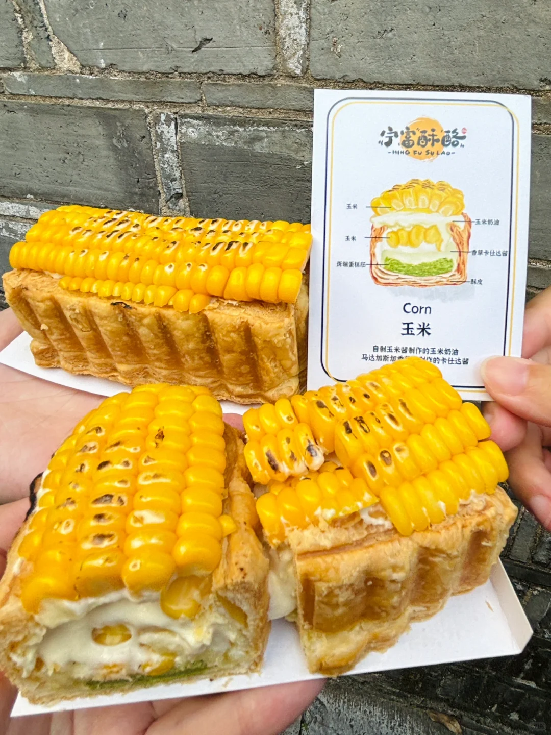 刷到老门东这家玉米酥酥挞风很大 赶紧去老门东打卡 跟图片一模一样 外形好可爱! 一口下去酥到爆炸 真的hin好吃~ - 奶冻也很推荐 口感很丝滑~ 芒果🥭那款果肉敲多 甜品脑袋放心冲!