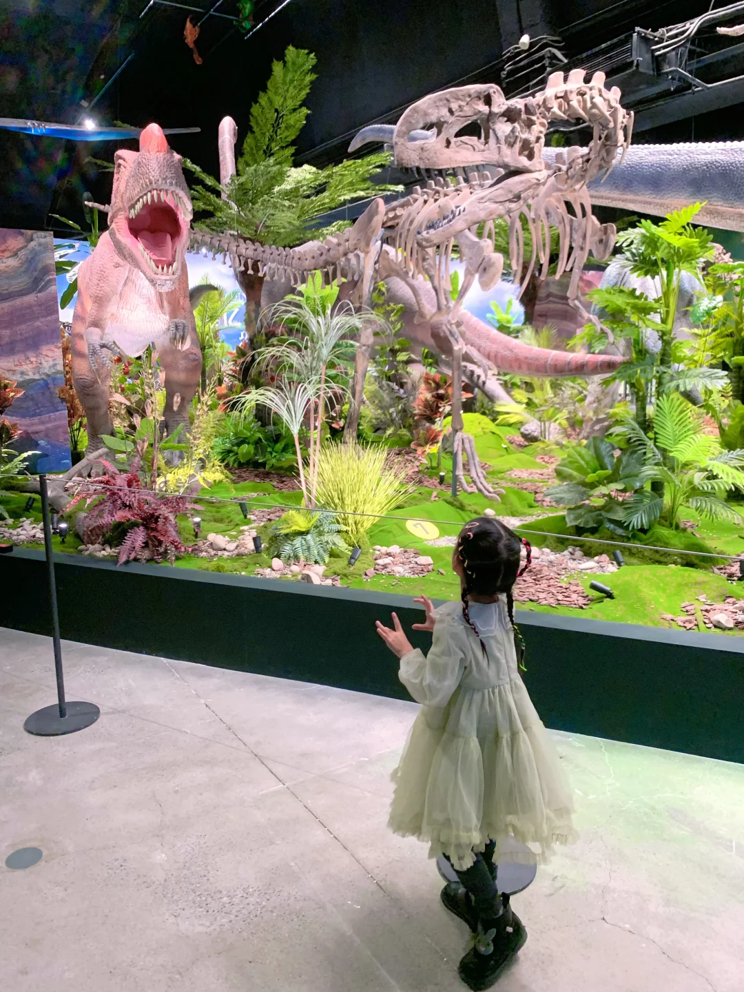 1️⃣层精心布置了大型机关恐龙模型与珍贵化石,为参观者营造了一个仿佛穿越时空的奇妙世界。特别设置了众多儿童互动环节,如与恐龙模型比身高、亲手触摸仿真恐龙皮肤、跟随虚拟恐龙脚印探索、参与化石拼图游戏、体验多媒体互动装置以及享受沉浸式光影秀。孩子们兴奋地喊道:“爸爸,这个恐龙好像活的一样,还会动呢!”就连成年人在这样的真实感面前也深感震撼。