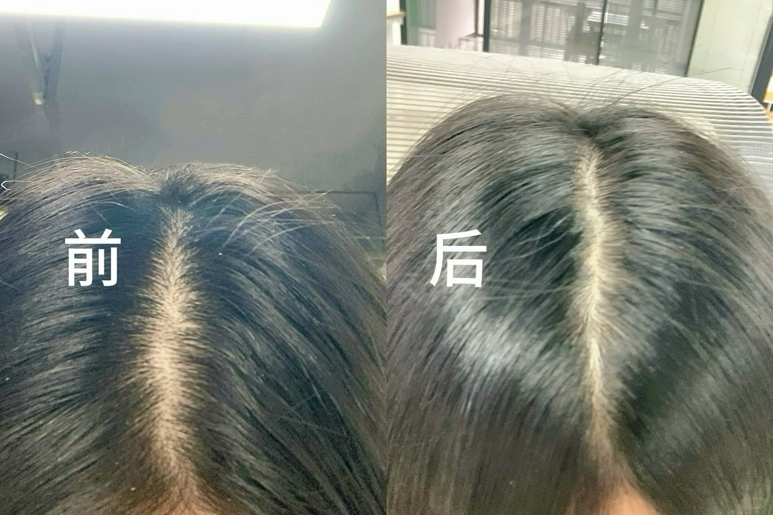 👇还有就是发缝好像也窄了点,姐妹可以看一下我的对比图,不知道是不是我自己的心理作用反正我还会继续回购的,脱发比较严重的姐妹也可以去试试,也没啥副作用。