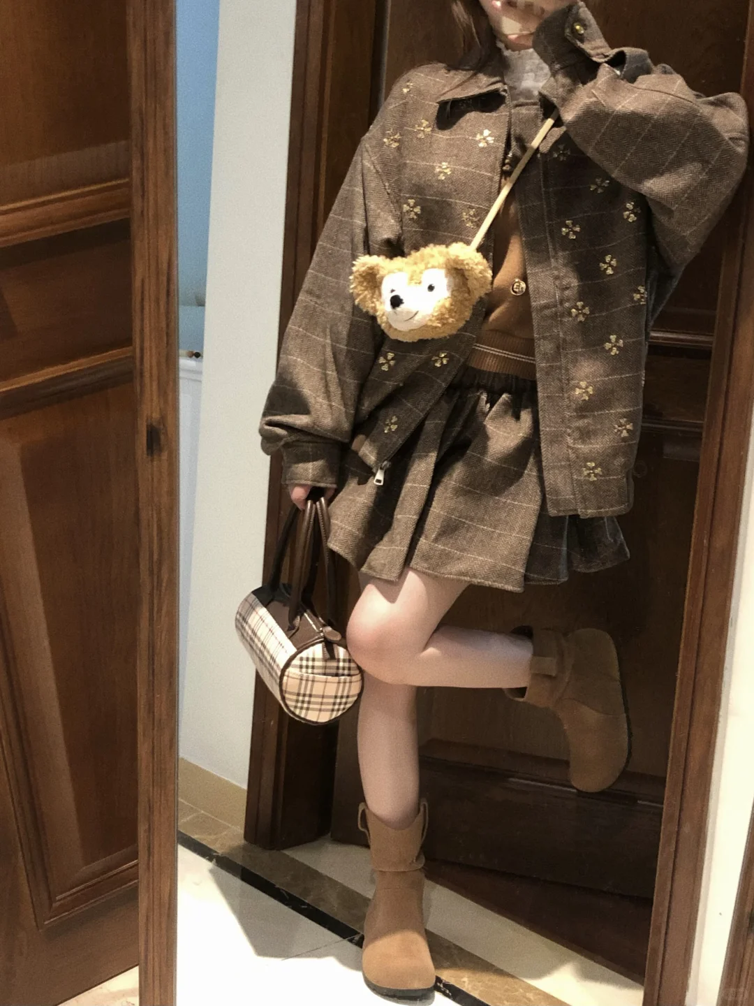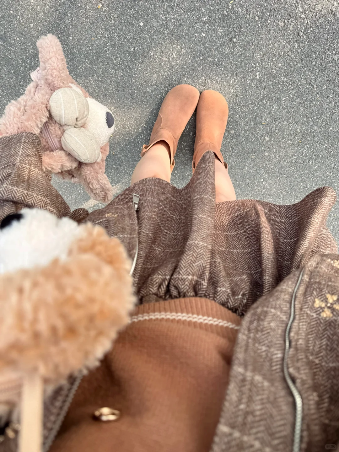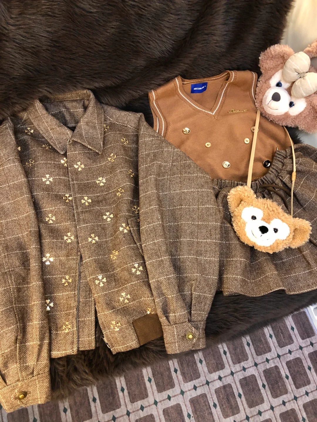 感觉不穿外套也很好看哇! 这套也好适合去迪士尼或者环球影城! 学院风果然是秋冬yyds🫶🏻🤎