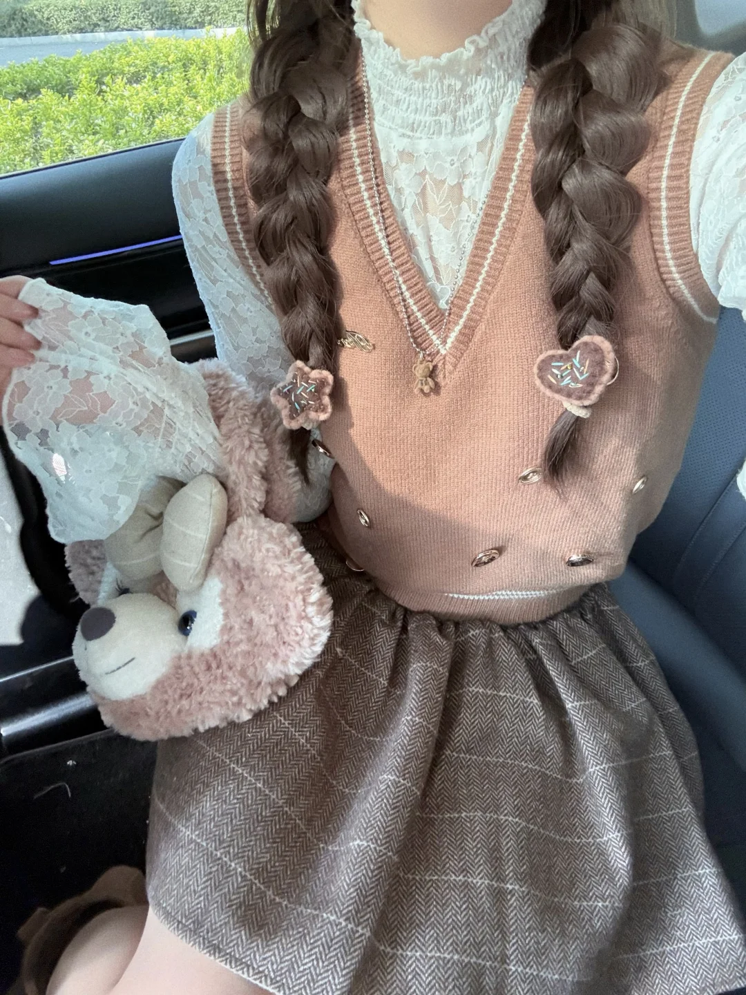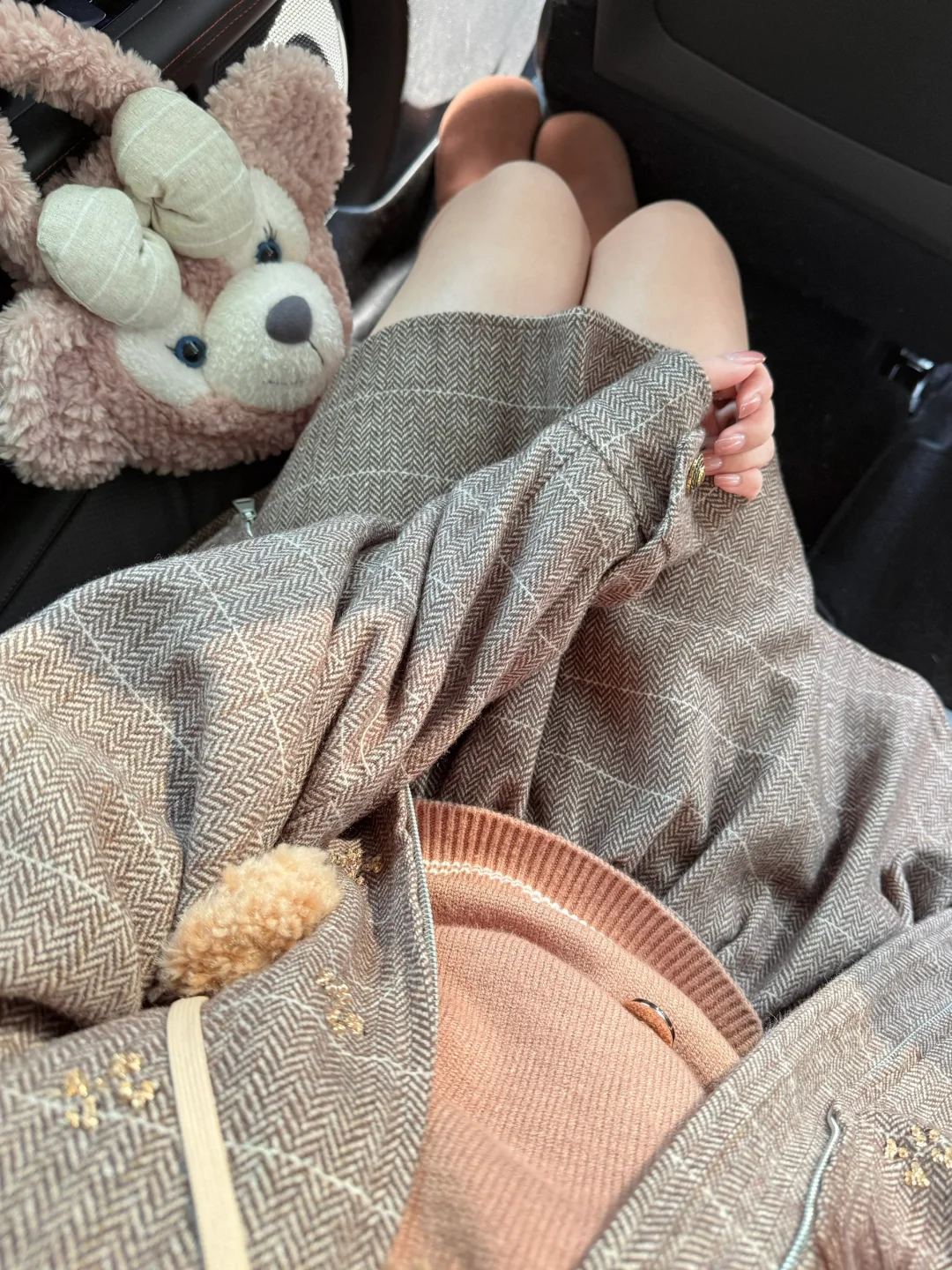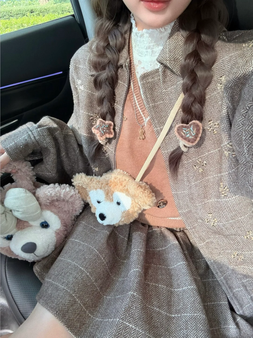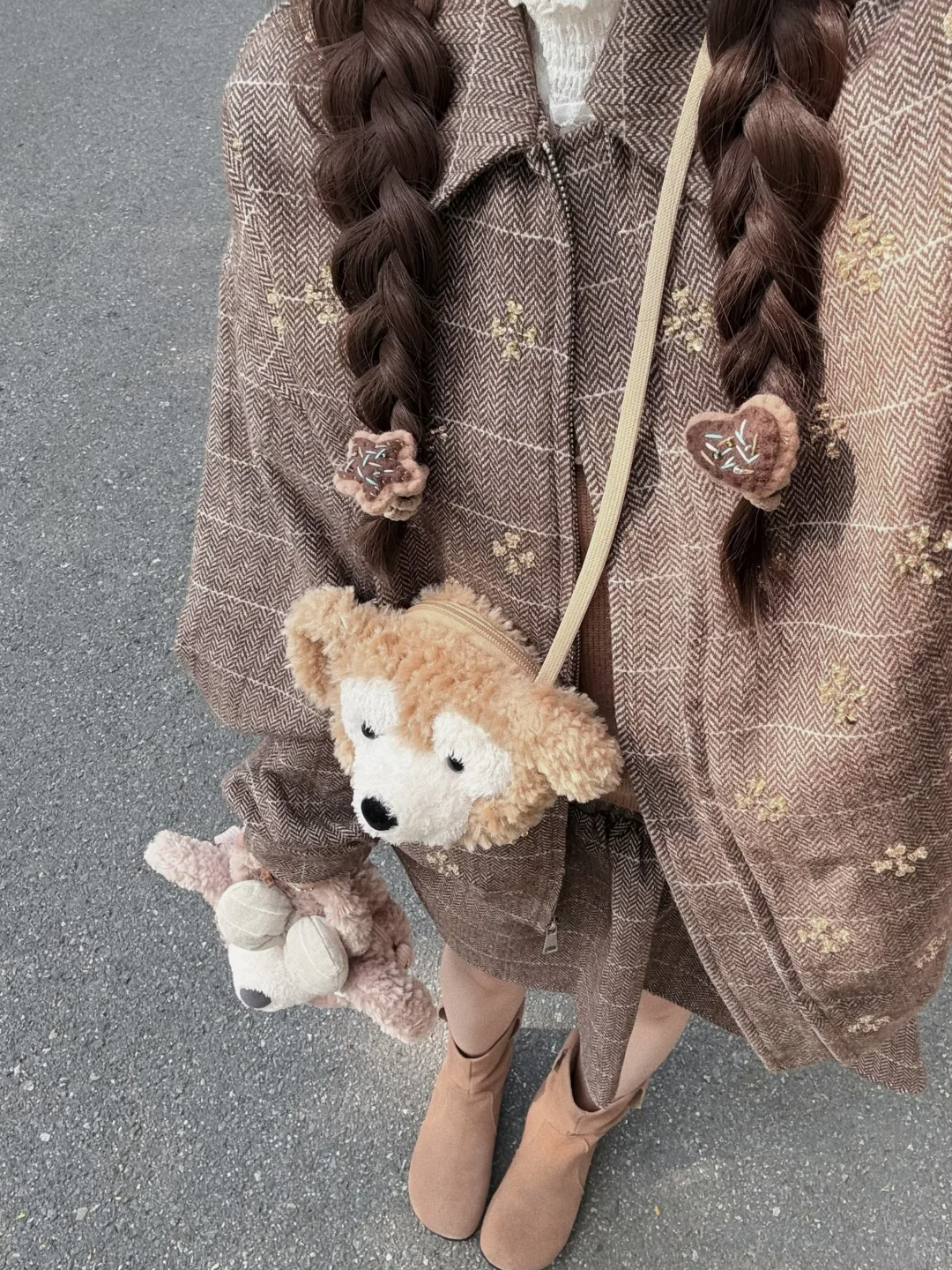 感觉不穿外套也很好看哇! 这套也好适合去迪士尼或者环球影城! 学院风果然是秋冬yyds🫶🏻🤎