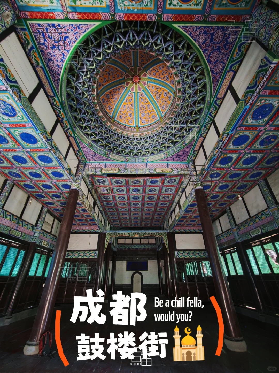 这两座精美的藻井,八十多年前,中国营造学社梁思成先生亲自前来考察并拍摄了照片。 它就是位于成都市中心的鼓楼南街🕌。 鼓楼南街🕌始建于明洪武八年,乾隆五十九年重建。是四川年代最久的🕌之一。附属建筑在抗战中被日机空袭炸毁,目前仅存一座礼拜殿。 这座礼拜殿前后三重檐、带有多种斗拱平面作窄而深的布局、殿内的绝美藻井全都实属建筑艺术的精品。 整座大殿内铺设木地板、殿外青石板铺地,柱杵为石鼓状。 目前这座建筑尚未对外开放,期待未来它和公众的见面。