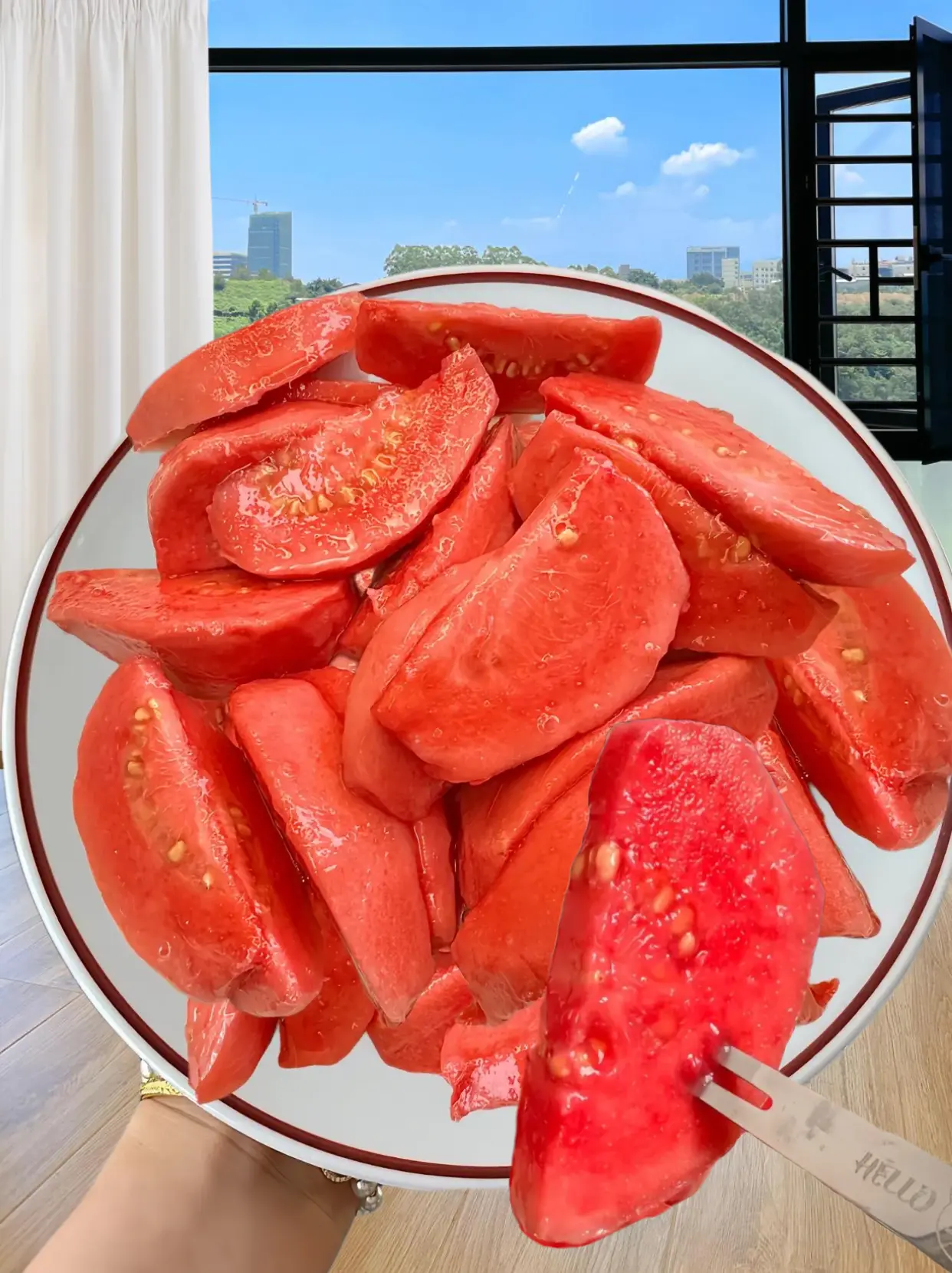 鲜嫩多汁软糯细腻。随手买的红心芭乐,真的惊艳到我了!打开箱子就有一股...