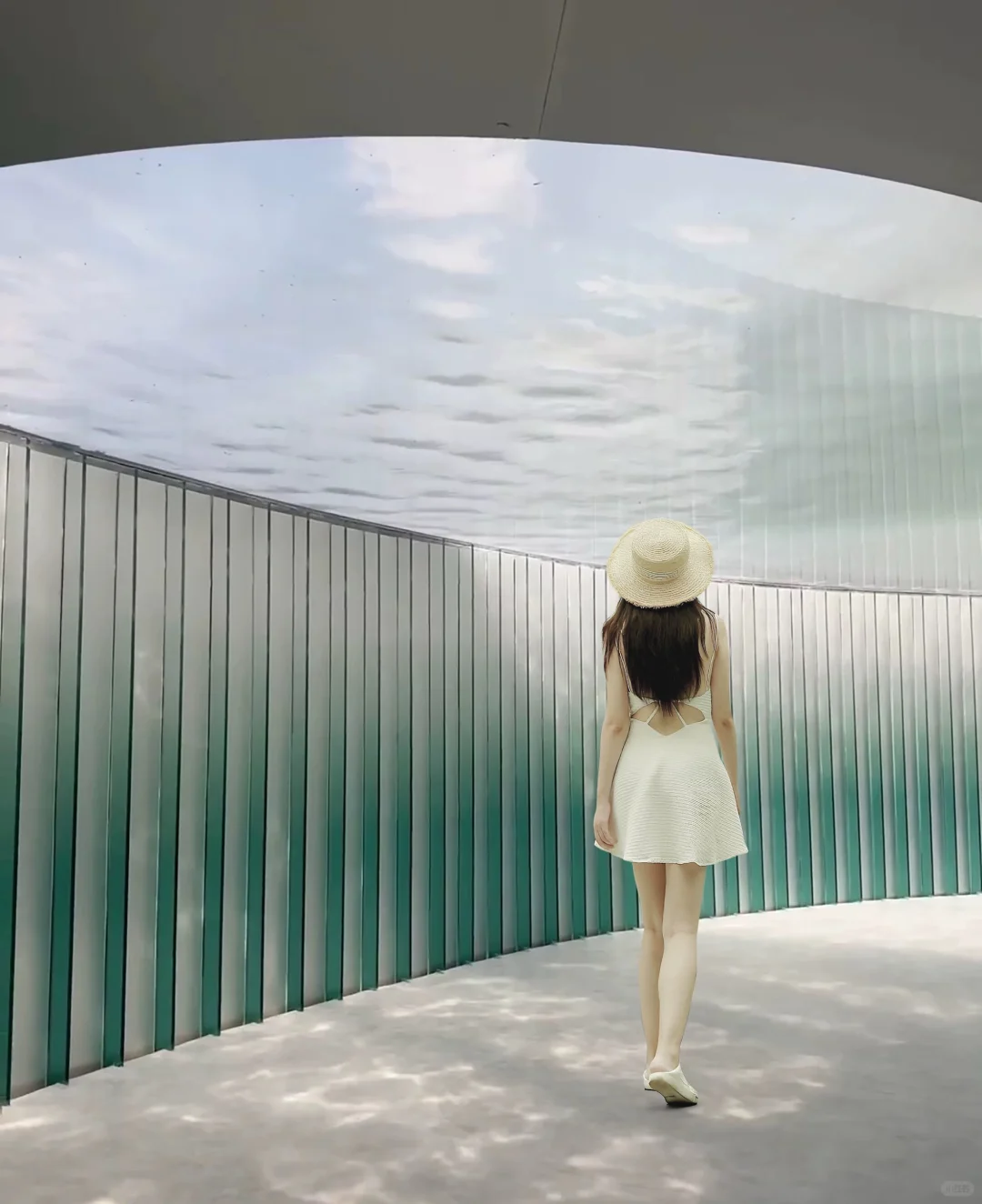 ➡️从高台进入展馆能看到镂空的花架建筑,空间感极佳,整体设计也很好看