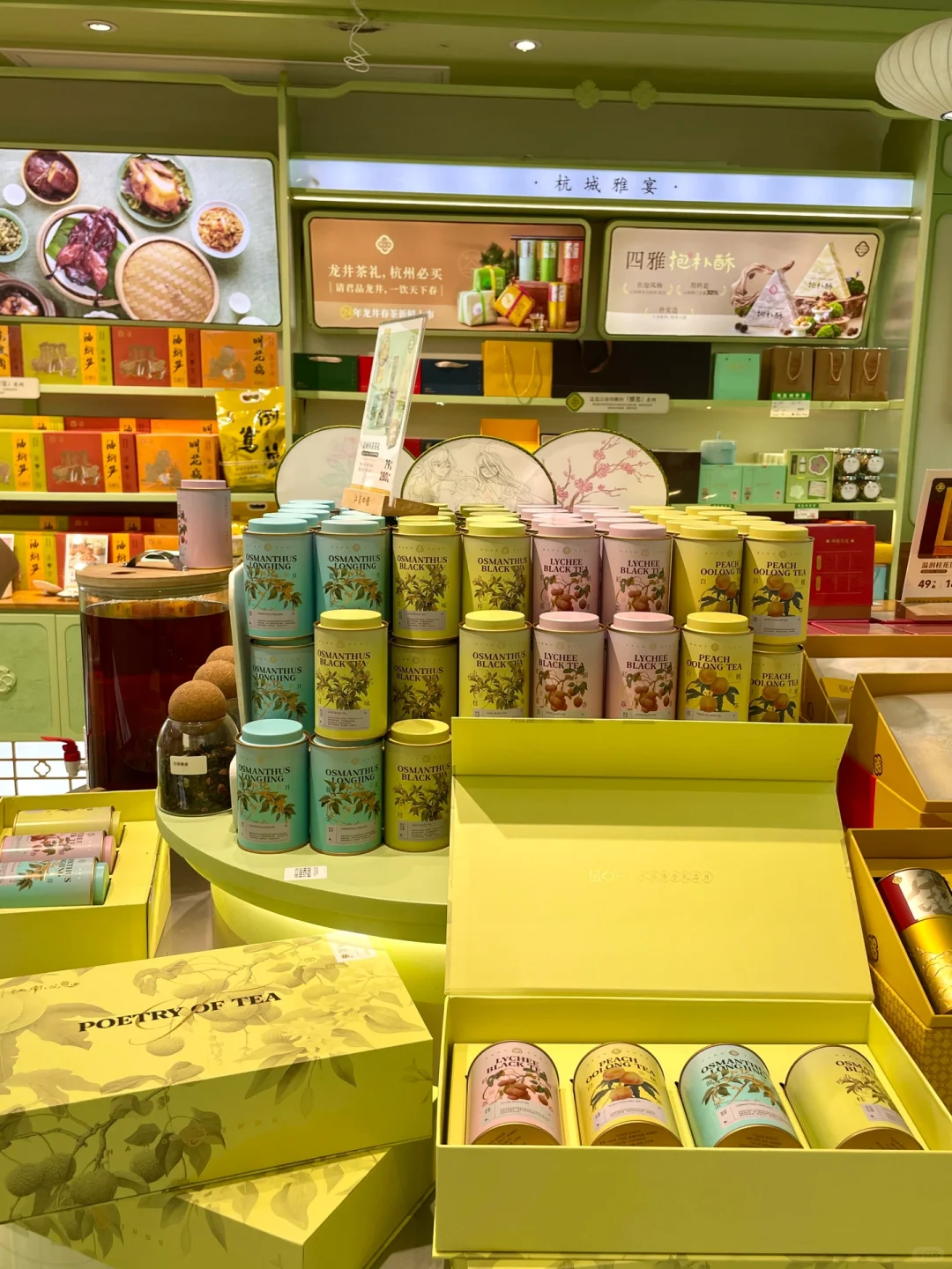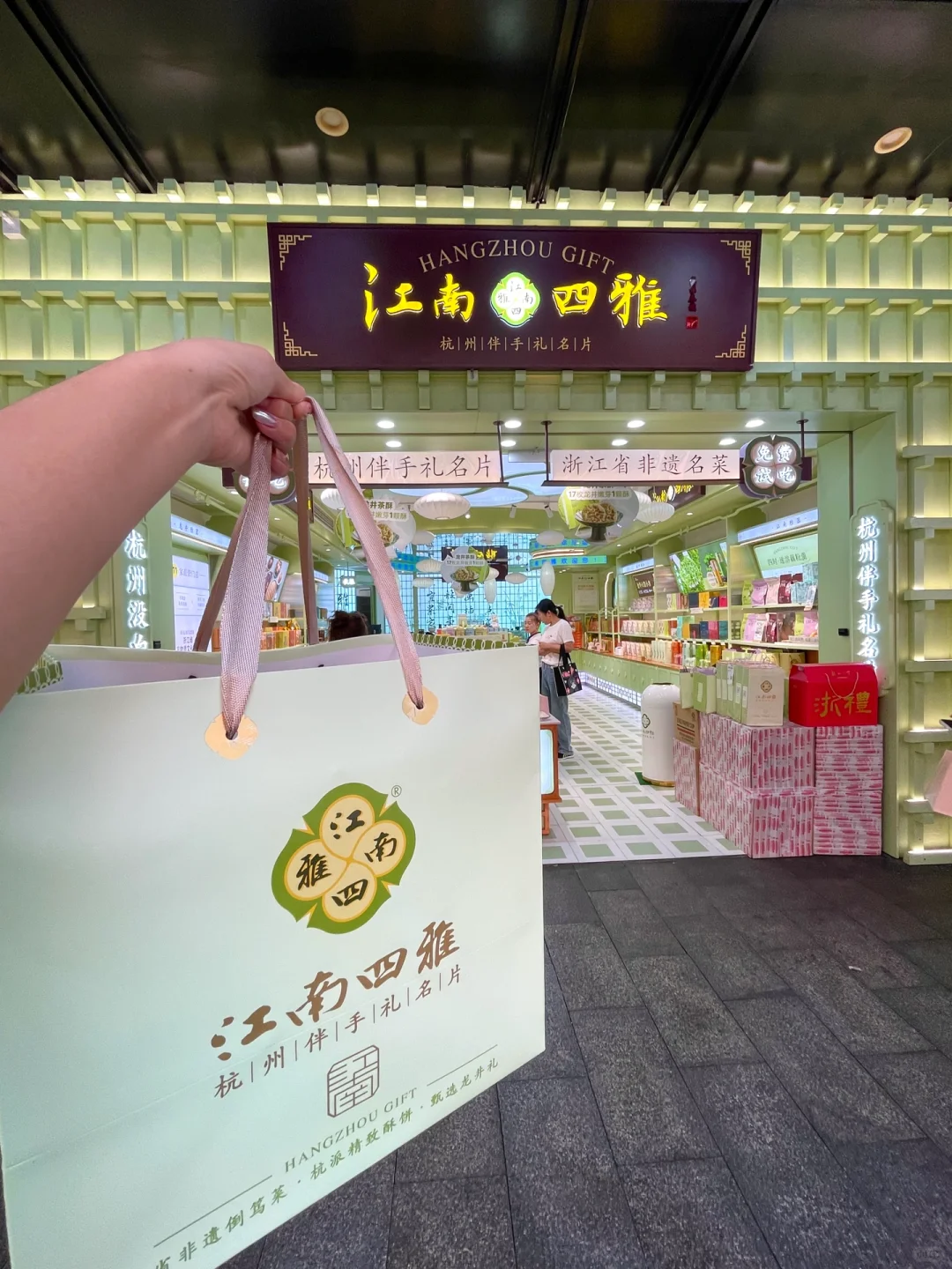 来杭州旅游🍃就没空手归了! 给亲朋好友带点伴手礼回去吧~ 就在西湖边,古雅的装修风格好杭州啊! ✔️小酥点 桂花龙井茶酥跟九曲红梅茶酥,茶香四溢,又酥又香!最近新出了一个山核桃酥,敲香的! ✔️茶叶 除了龙井以外,我还是推荐花茶🍵 口感清香,年轻人也很喜欢喝!! 龙井金桂、荔枝红茶、九曲桂味和白桃煮茶四种口味,包装也精致! 藕粉、杭州熟食…这边都有,可以来逛逛还有试吃!别再去那些网红店啦!! 🍵江南四雅(湖滨店)