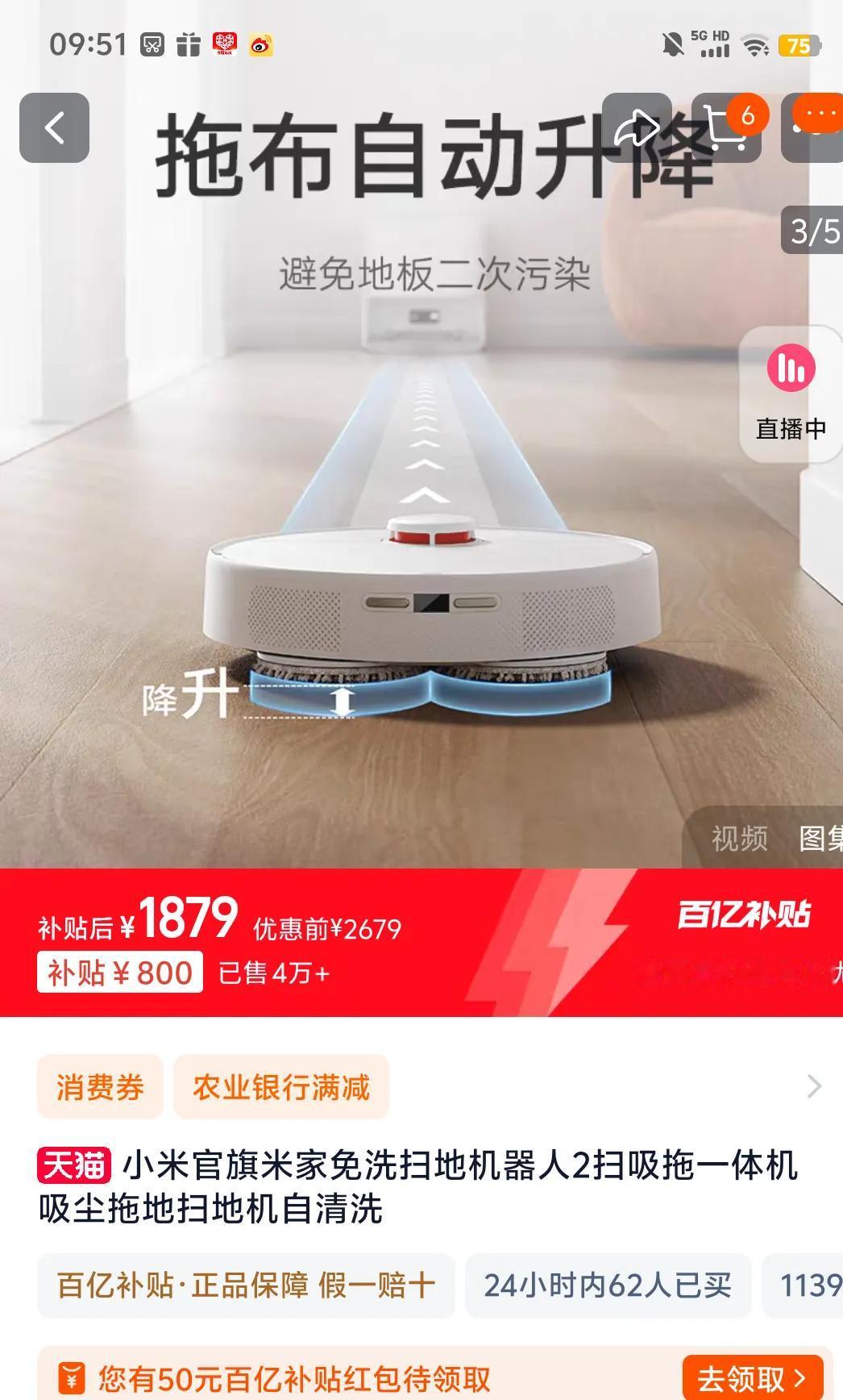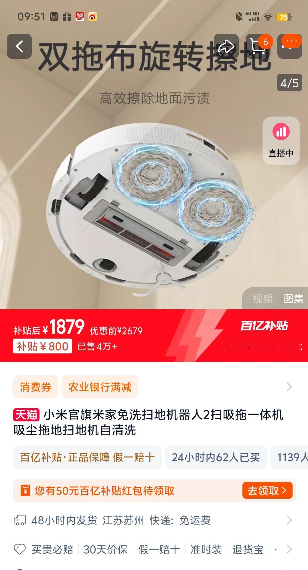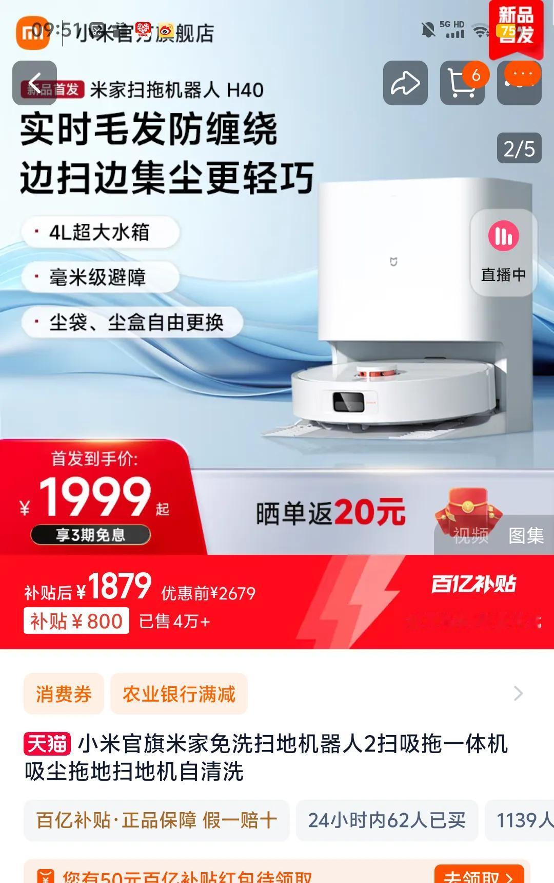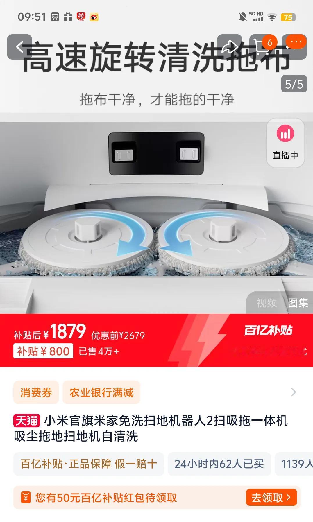 #理想家生活#老公,最近比较忙,家务活也干不了,他提议买台智能扫地机器人[比心][比心][比心] 米家免洗扫地机器人,扫拖机器人H40(新品)1879元,挺满意的!!!双拖布旋转擦地,高效清除地面污渍。拖布可自动升降,可避免二次污染!!!实时毛发防缠绕,边扫边集尘更轻巧,4L超大水箱,毫米级避障,尘袋尘盒自动更换!!!高速旋转,清洗拖布!!! 这次费用,必须老公自己出,谁叫他想买的???