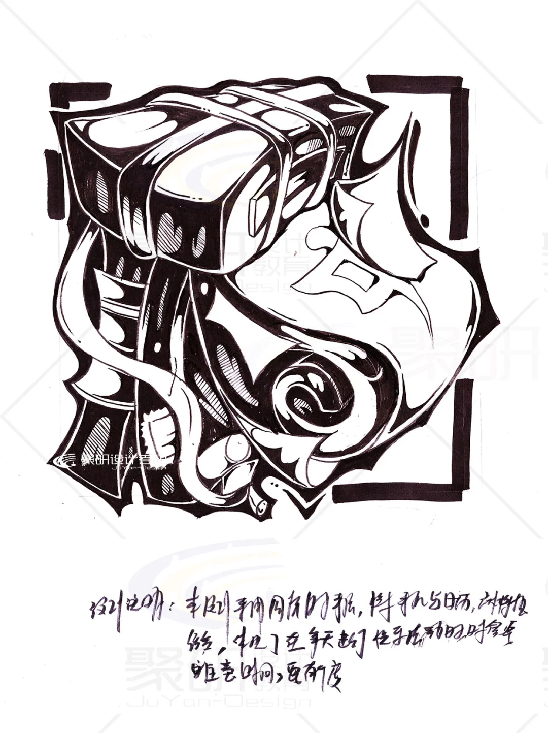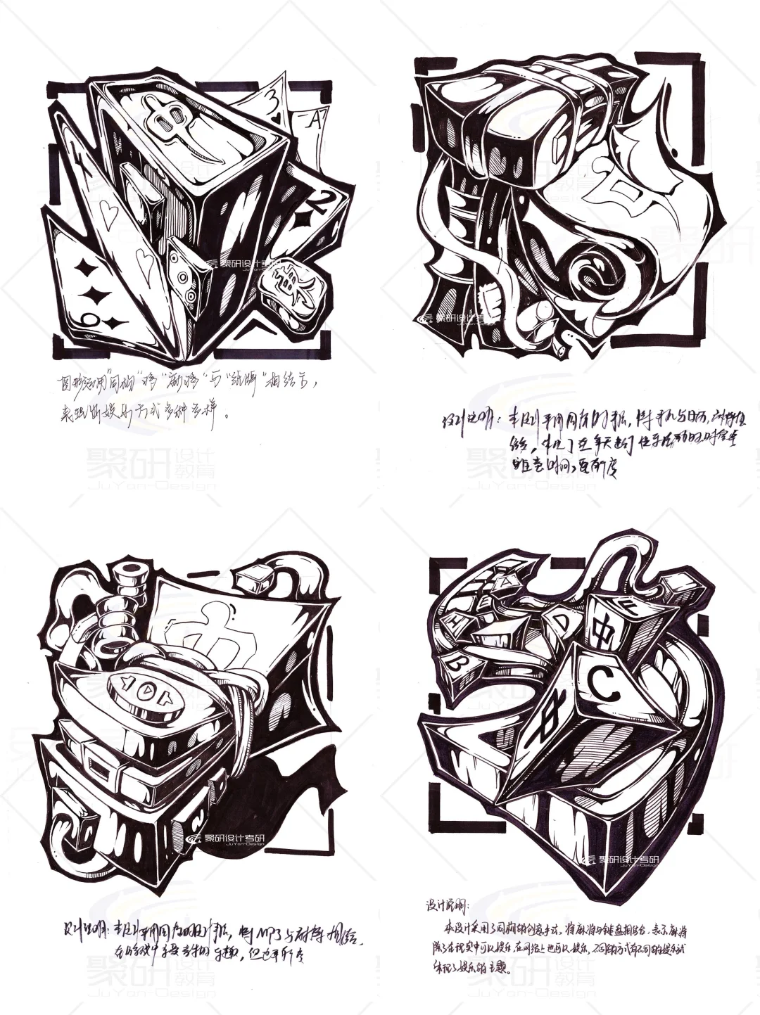【麻将】元素齐工大黑白创意设计手绘①