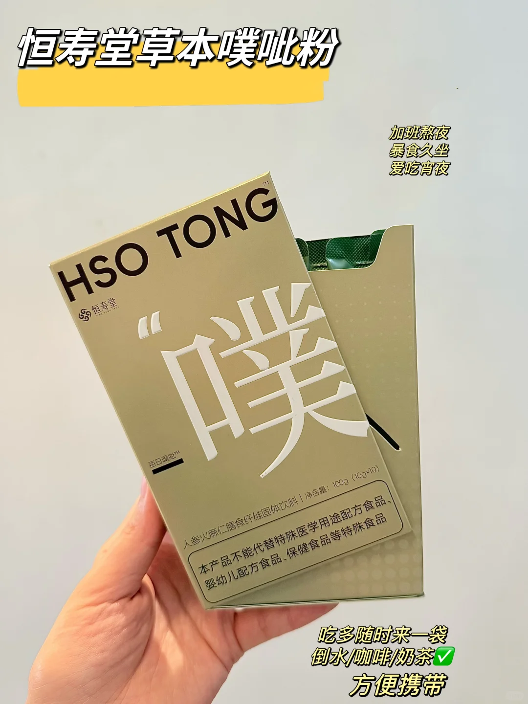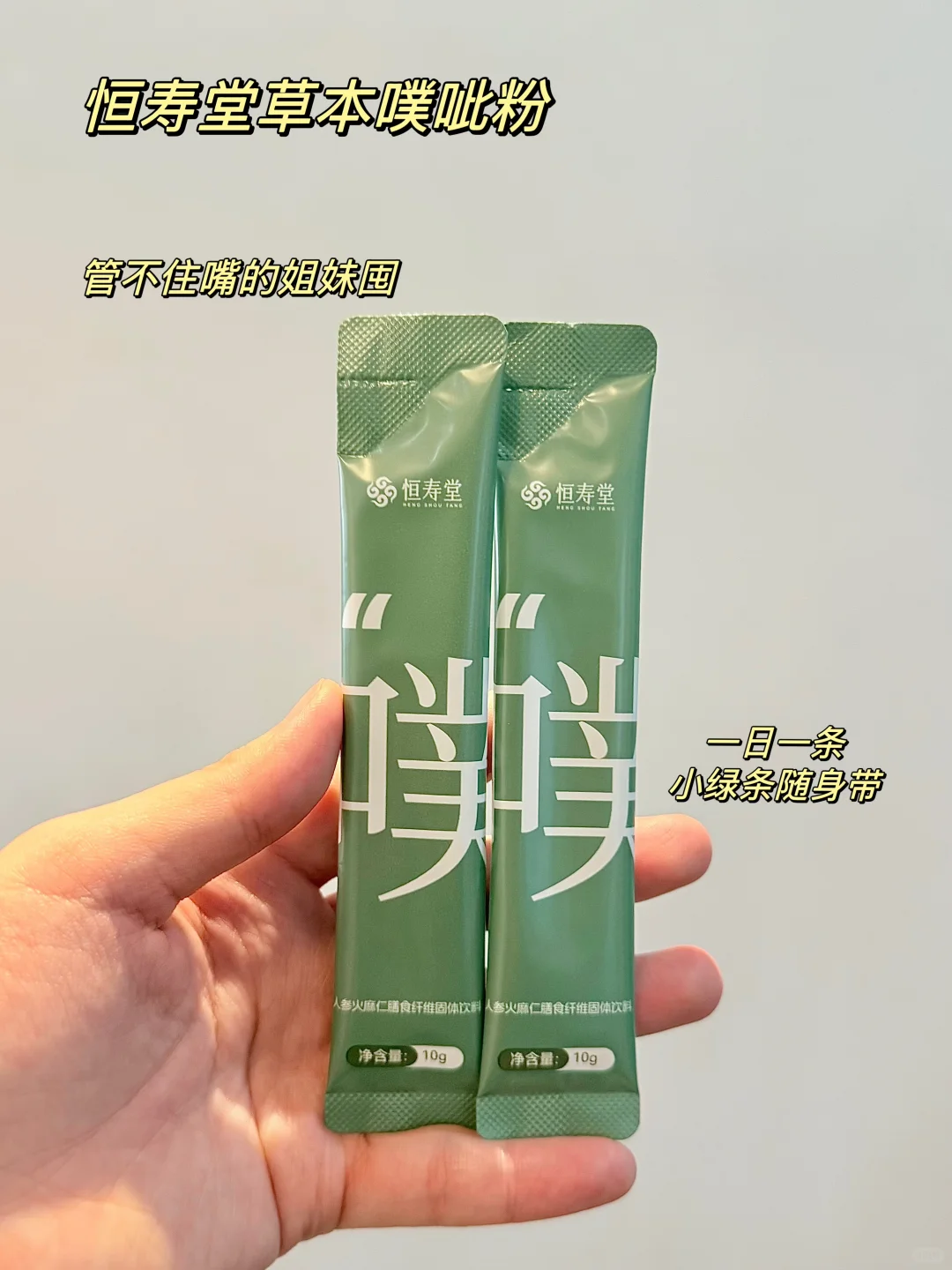 但是天气转冷后,嘴巴到了晚上就会忍不住馋,控制不住自己,其实我一直很注意肠道健康,之前也试过益生菌,发现自己很容易耐受,吃一段时间就要换菌种,就没能坚持下来。懒人研究了一段时间别的路子,比对下来发现恒寿堂的草本噗呲粉合适,主成分是超级食物“火麻仁”,含丰富油脂。不过按照传统草本的思路,单独吃火麻仁的话会损伤身体,参考传统古方,噗呲粉加上了人参、黄芪这两个补气的成分。现在偶尔我也不会对自己太严苛,开心最重要,出门会在包里放一条,万一吃多了呢。